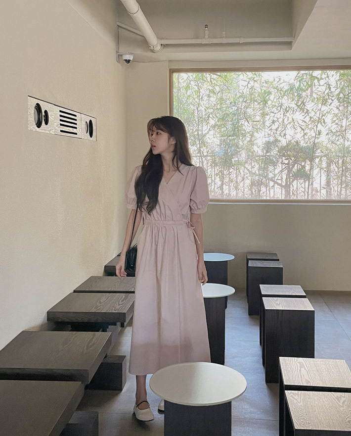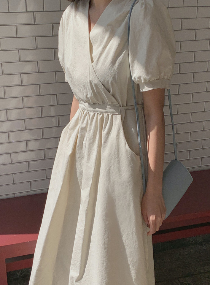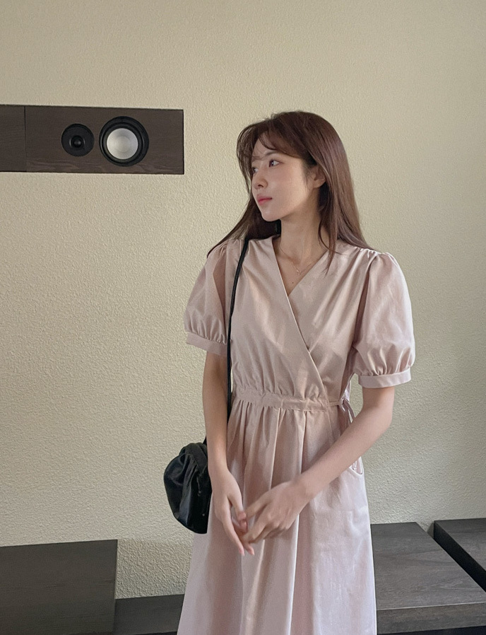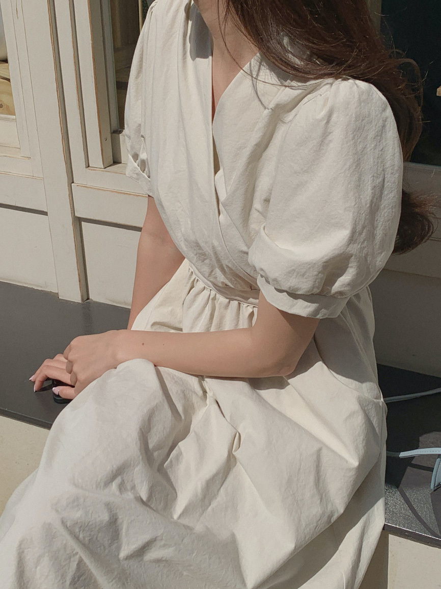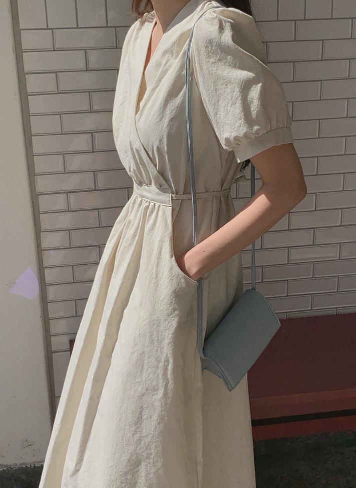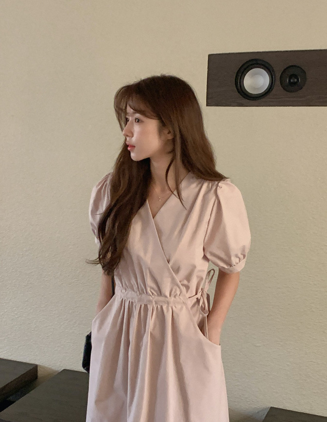 韓國Cherrykoko授權 優雅氣息交叉領綁帶純棉洋裝