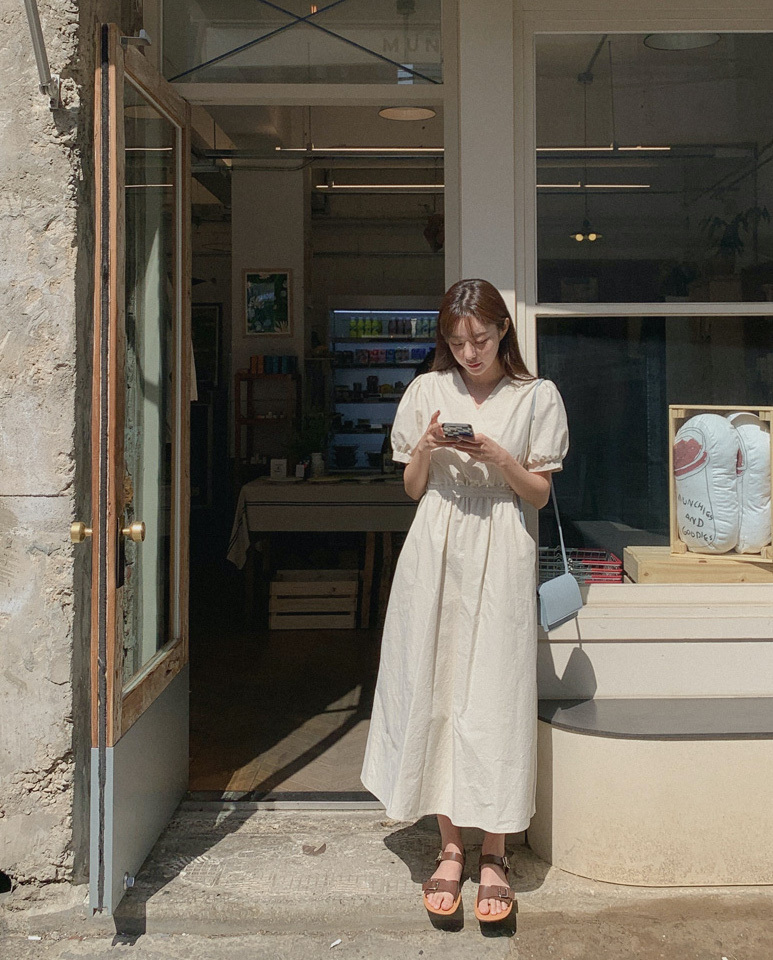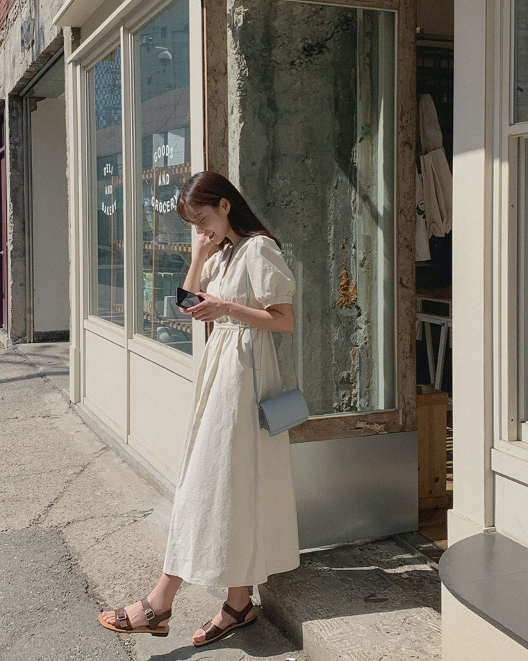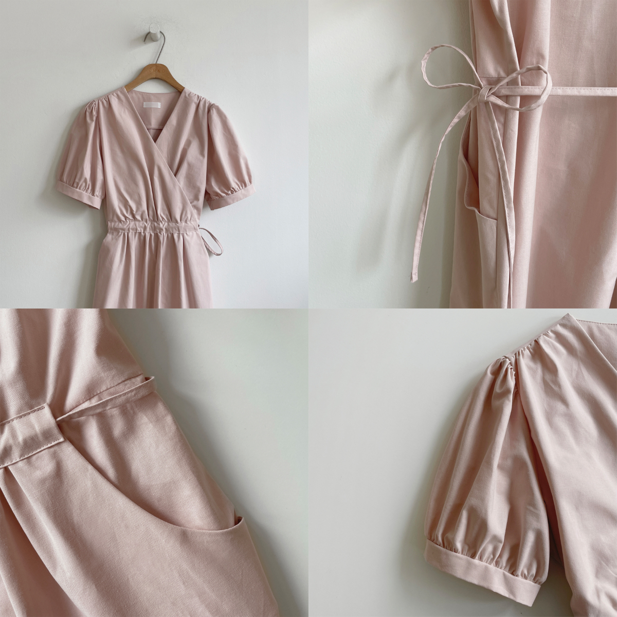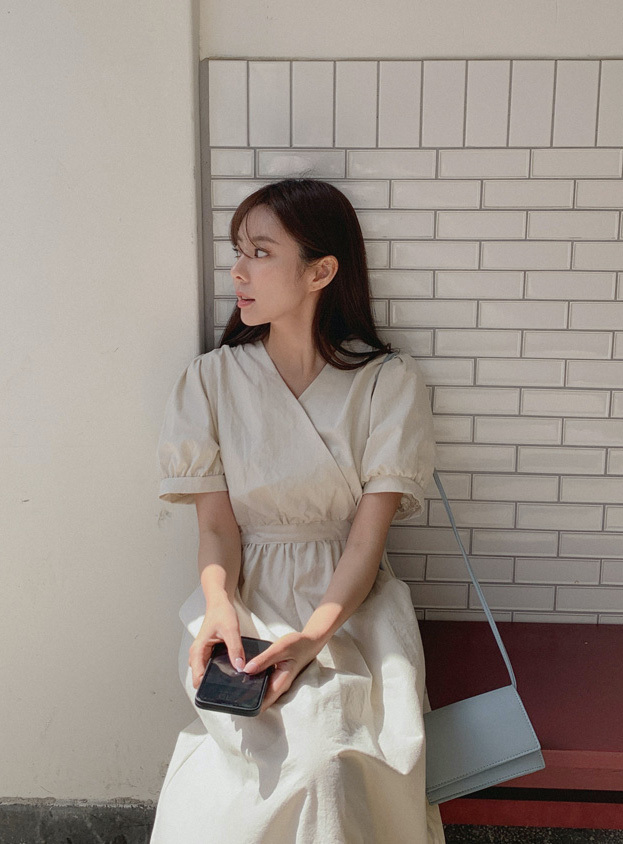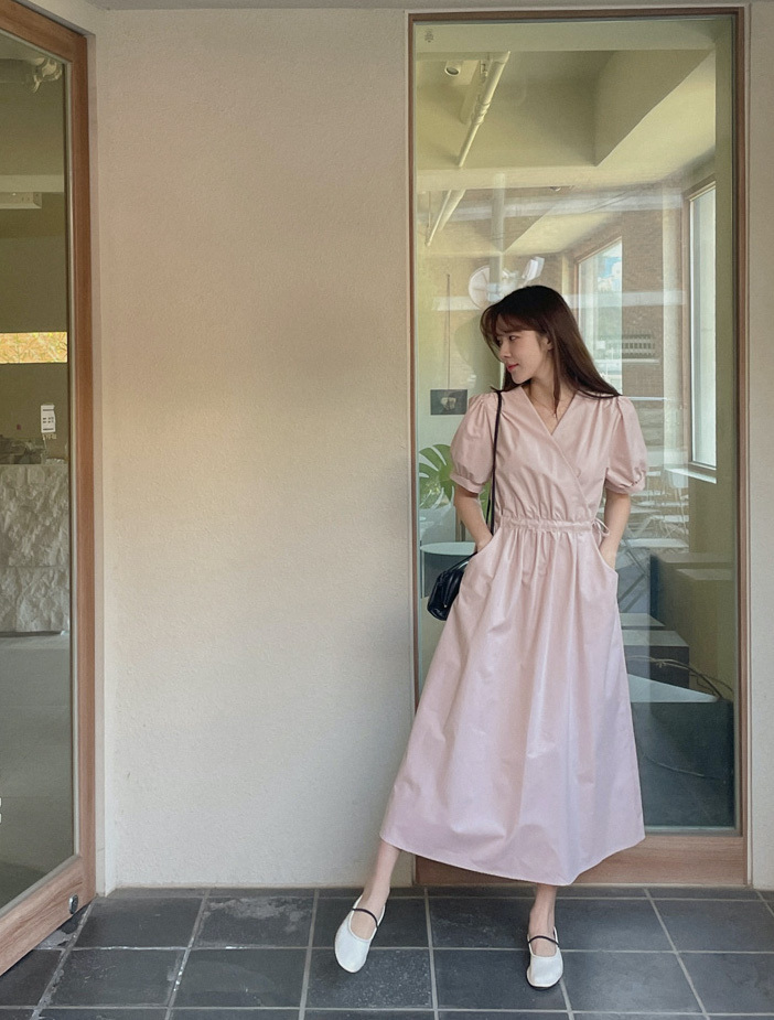 韓國Cherrykoko授權 優雅氣息交叉領綁帶純棉洋裝