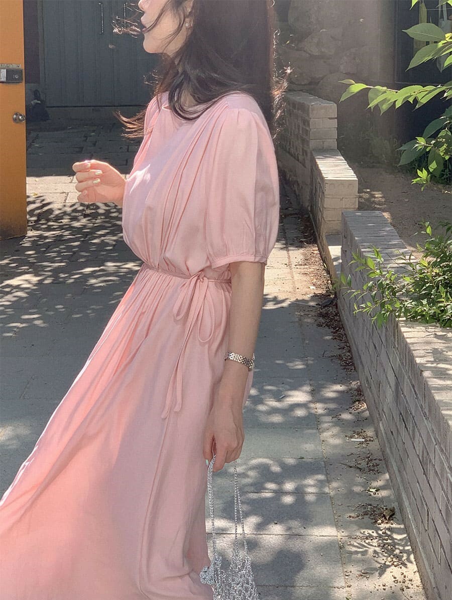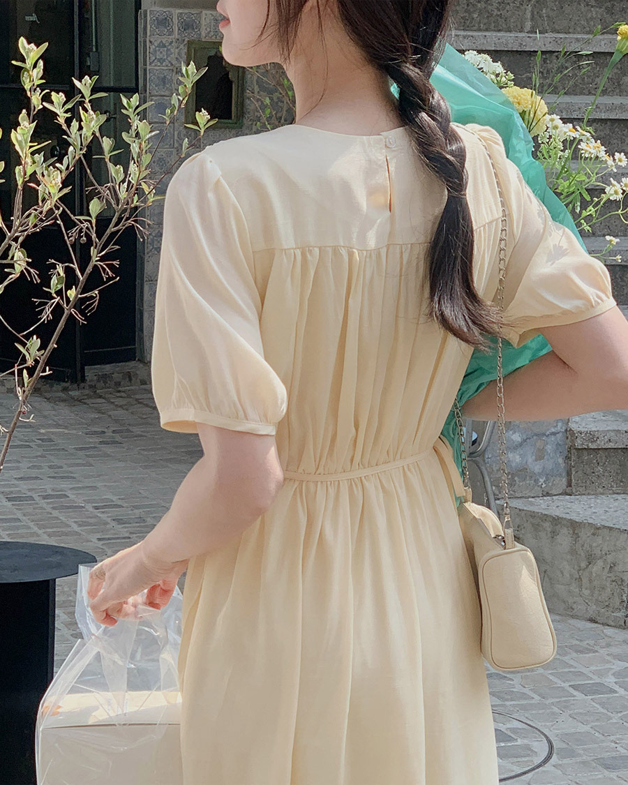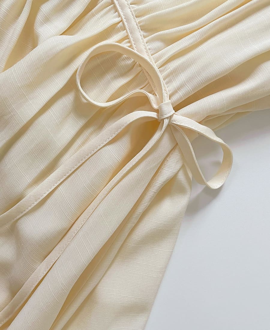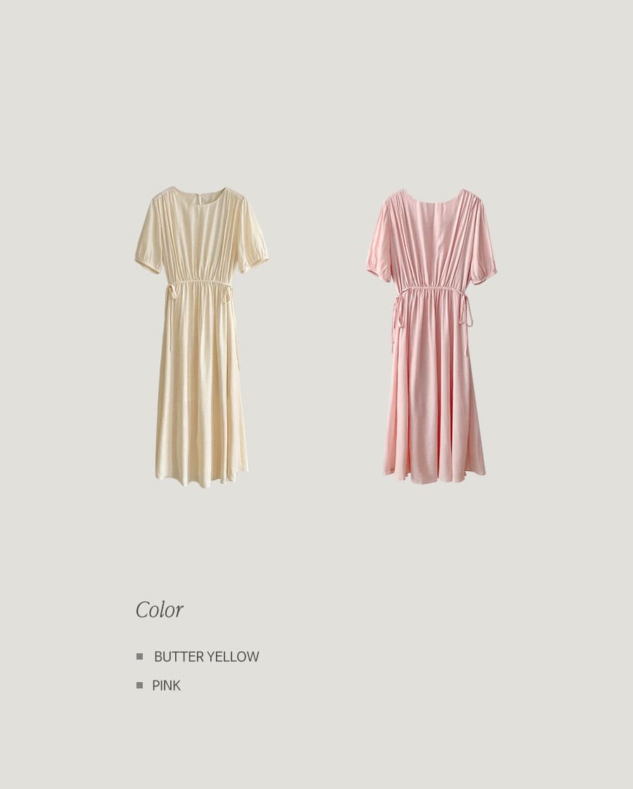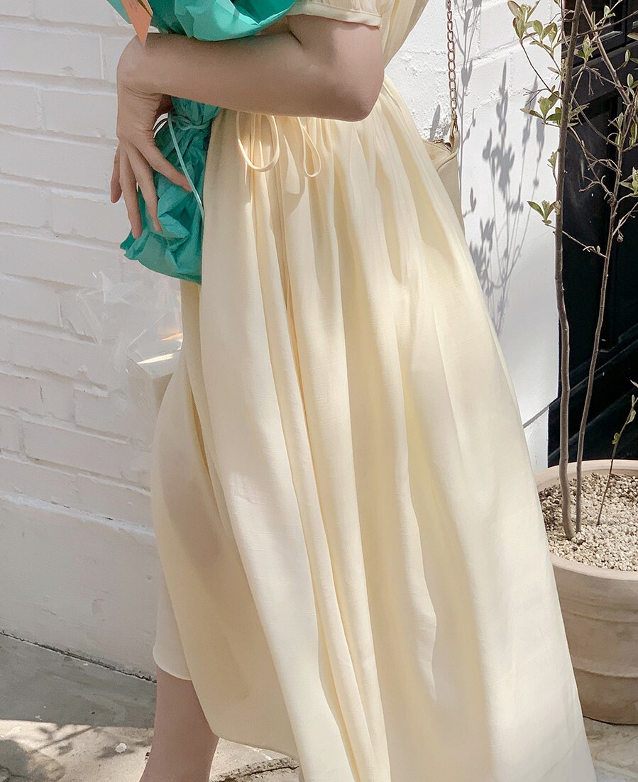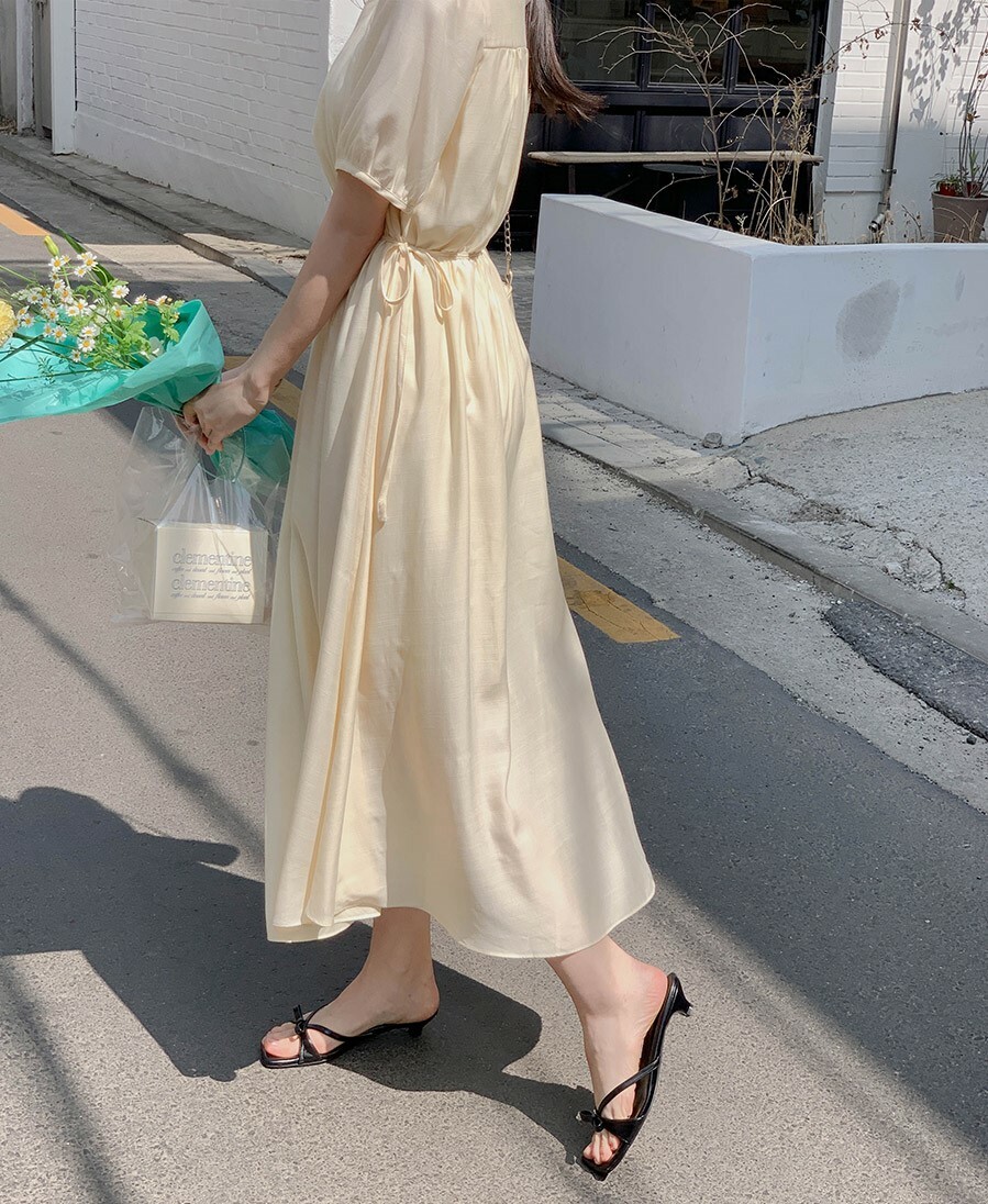 韓國Cherrykoko授權 女神氣質側綁帶縮袖傘擺洋裝