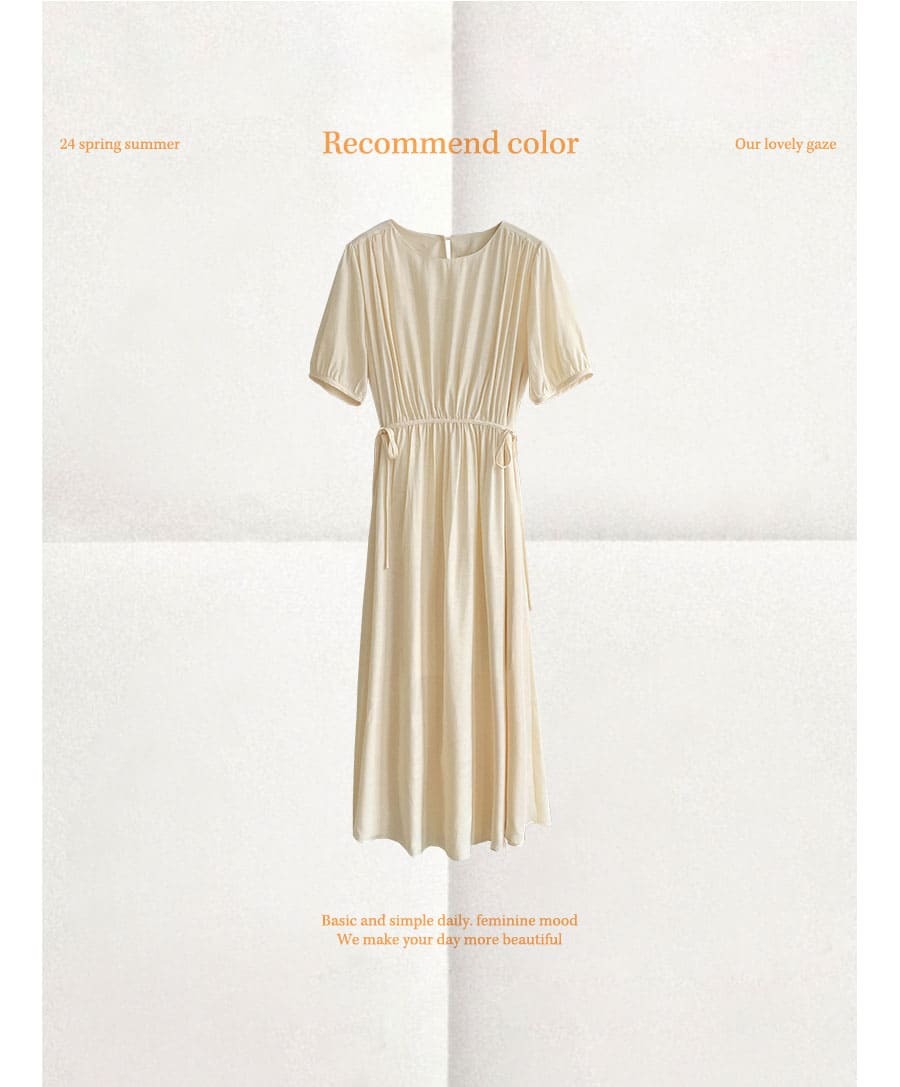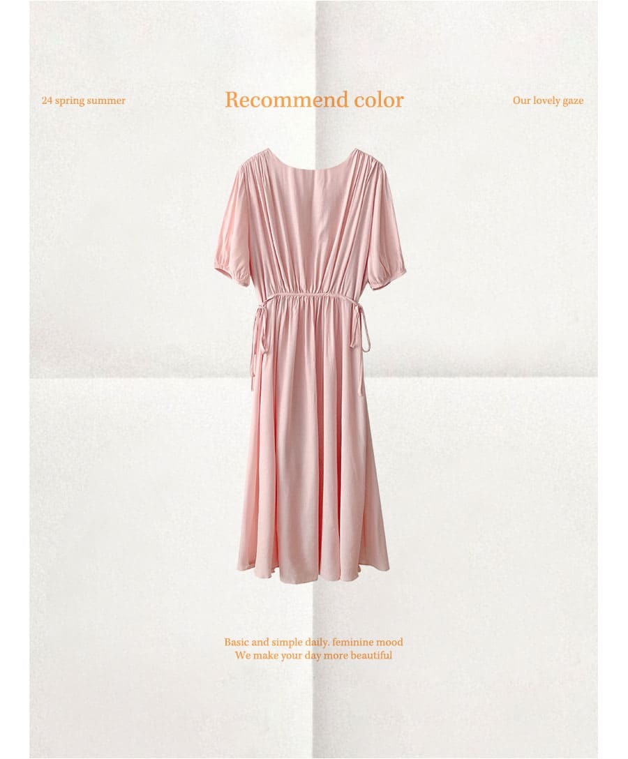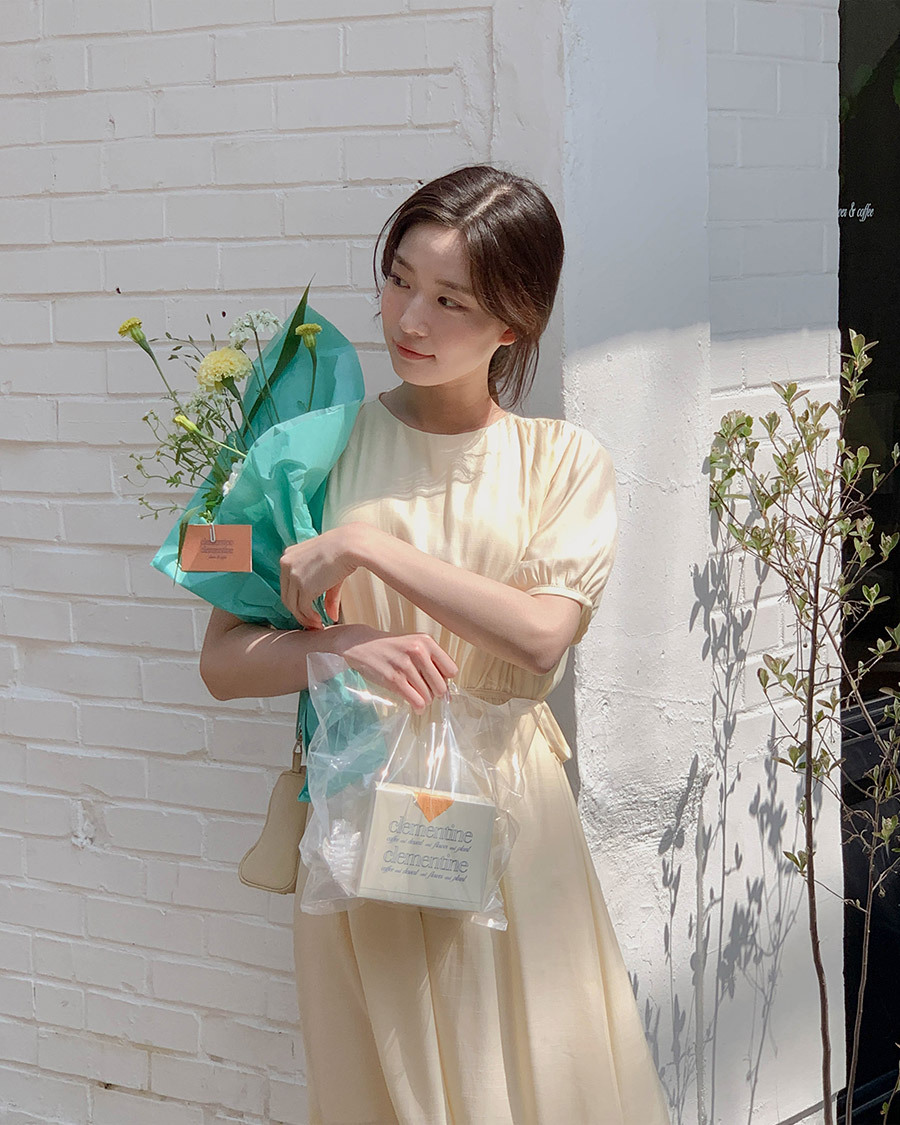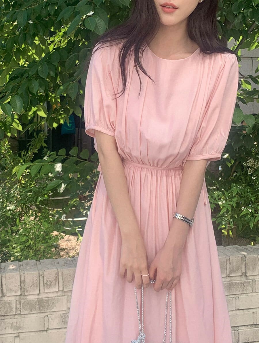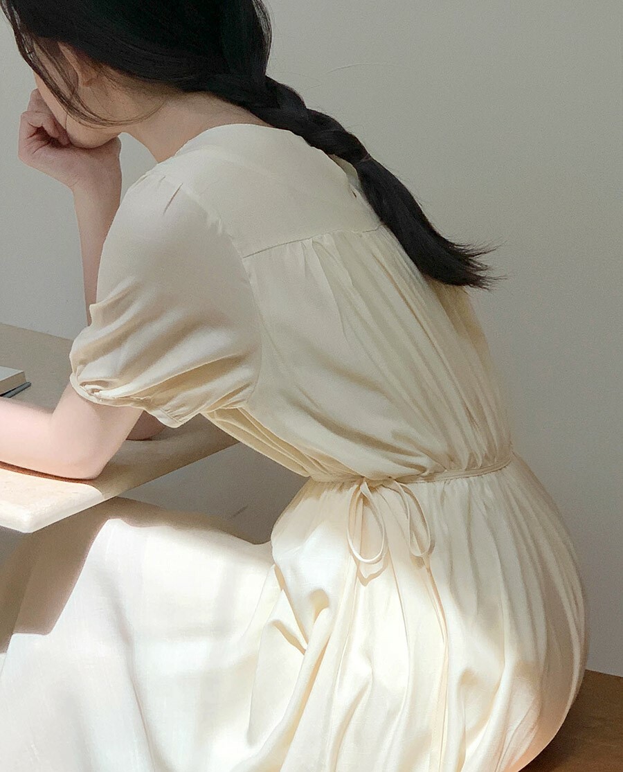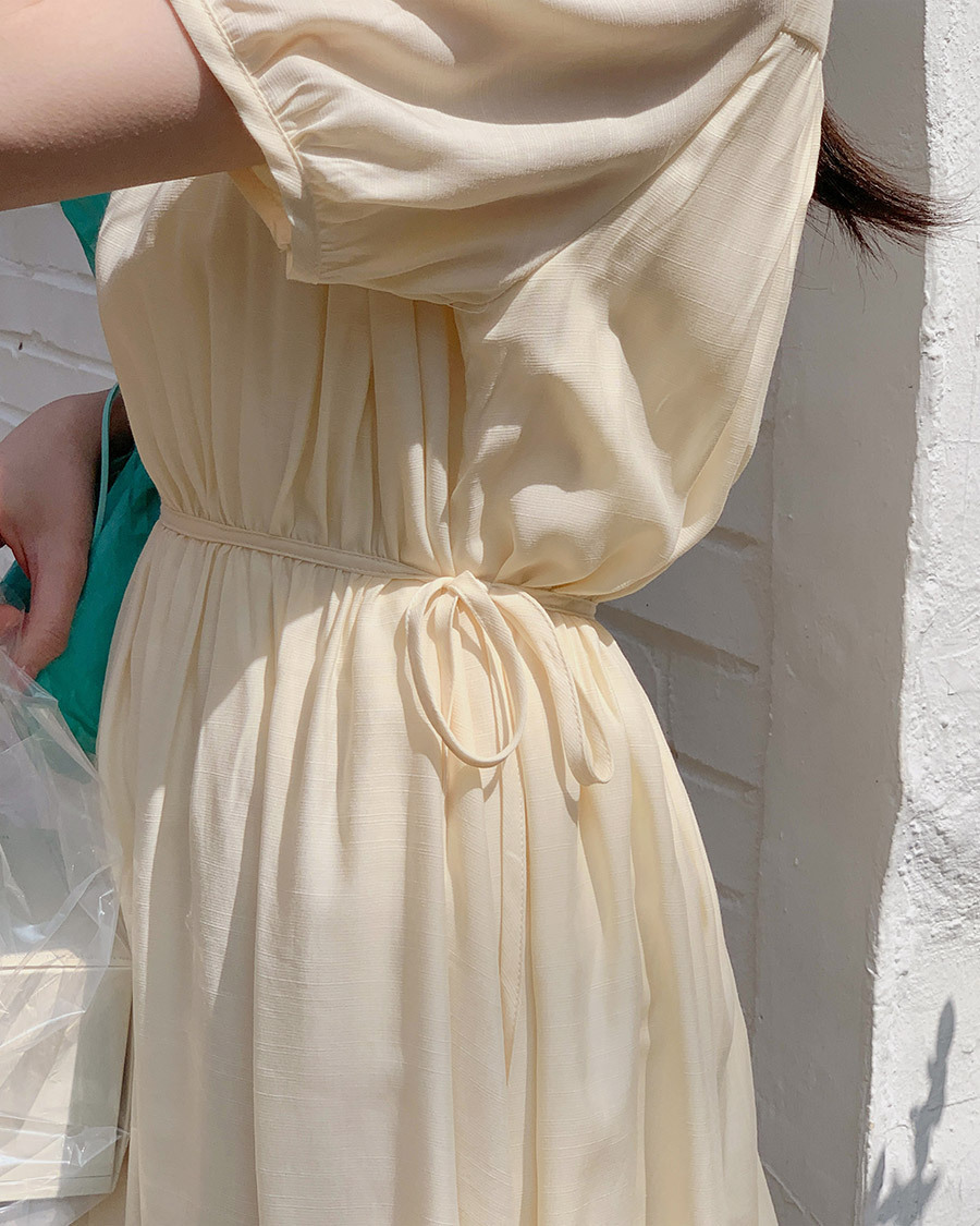 韓國Cherrykoko授權 女神氣質側綁帶縮袖傘擺洋裝