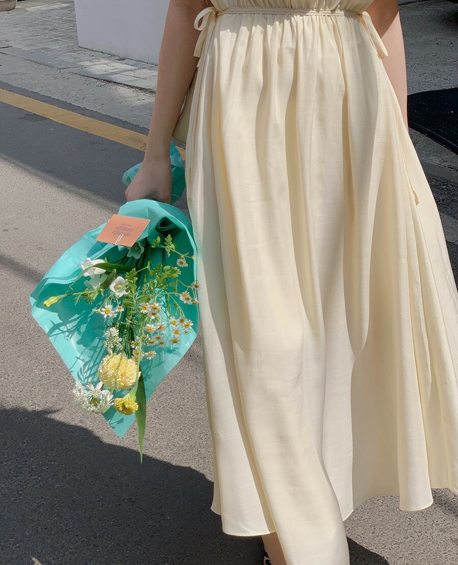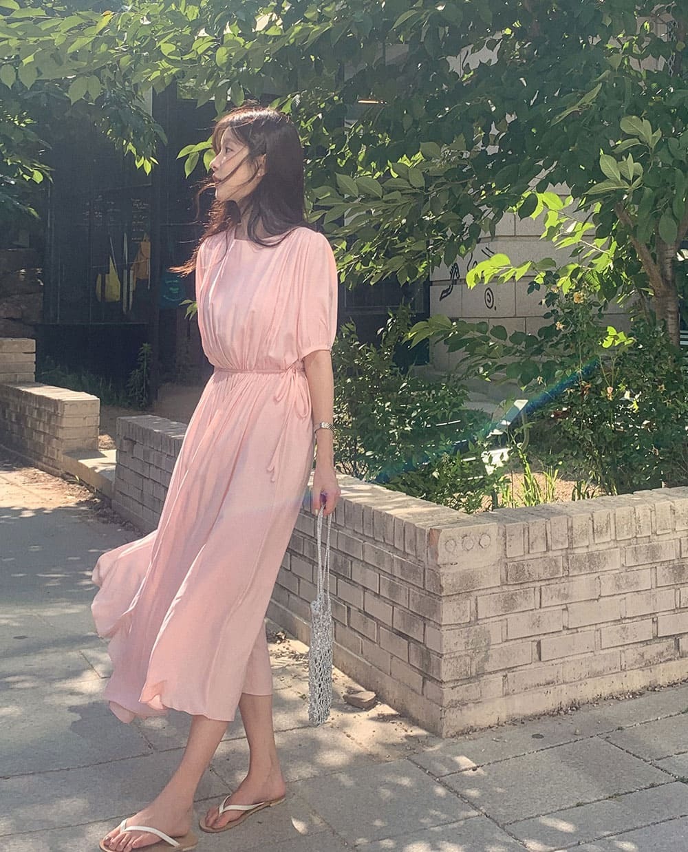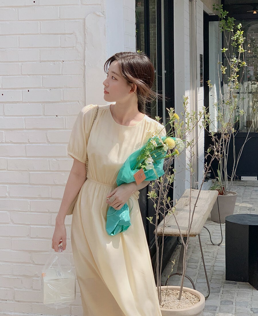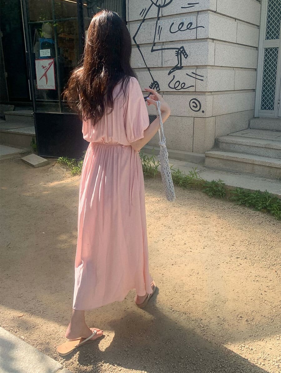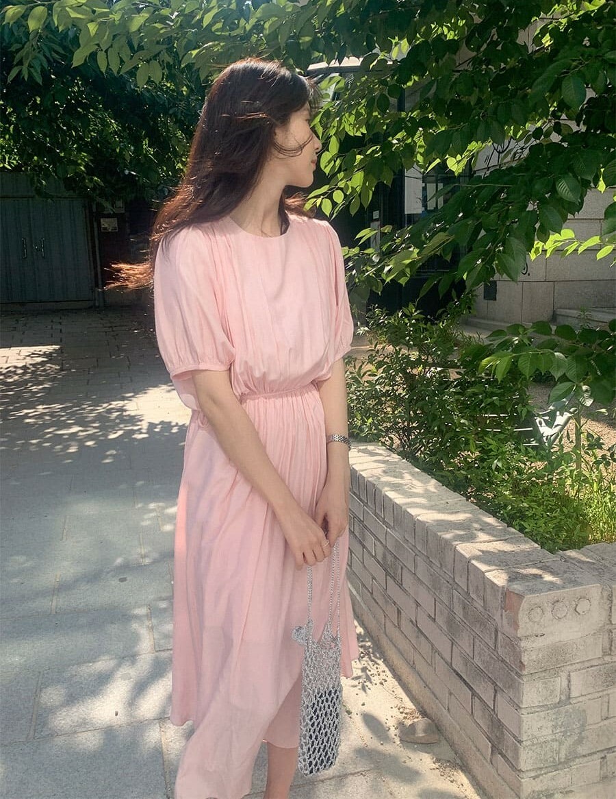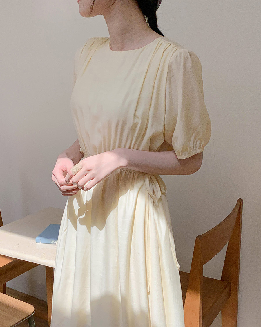韓國Cherrykoko授權 女神氣質側綁帶縮袖傘擺洋裝