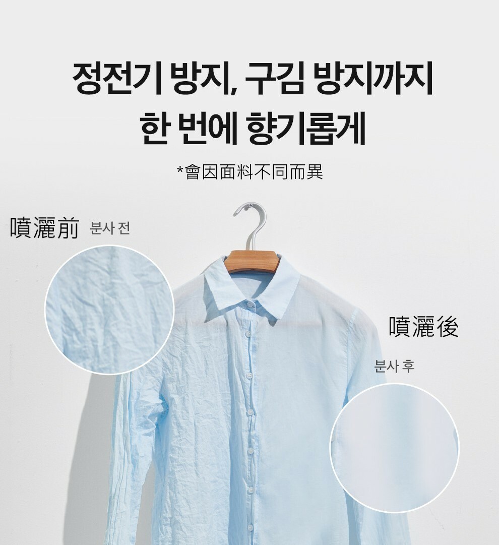 ⑶洗滌後,在晾乾衣物時輕輕噴1-2次。