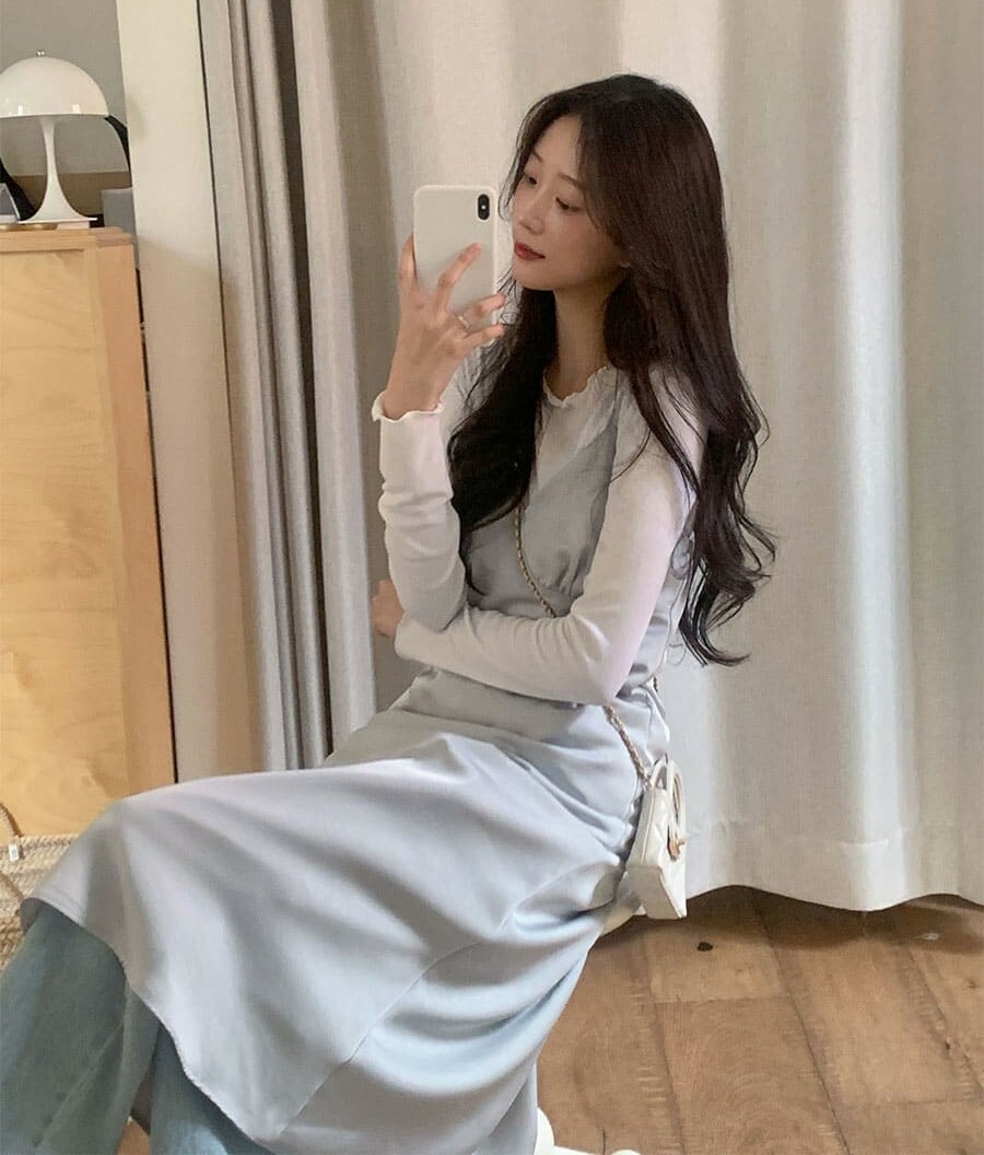 ■ 總長110cm 肩寬22cm(後背鬆緊) 單面胸寬42cm 單面腰寬42cm 單面臀寬47cm 下擺寬73cm 內裡長度47cm