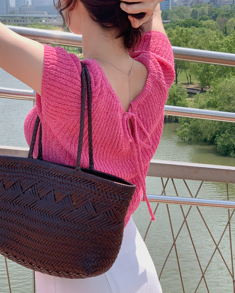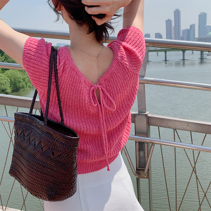 韓國Cherrykoko授權 少女魅力後背綁帶船領針織衫