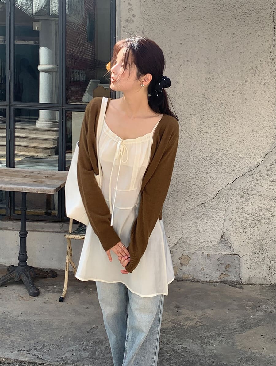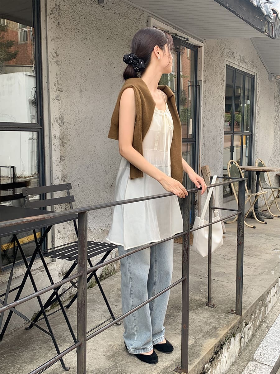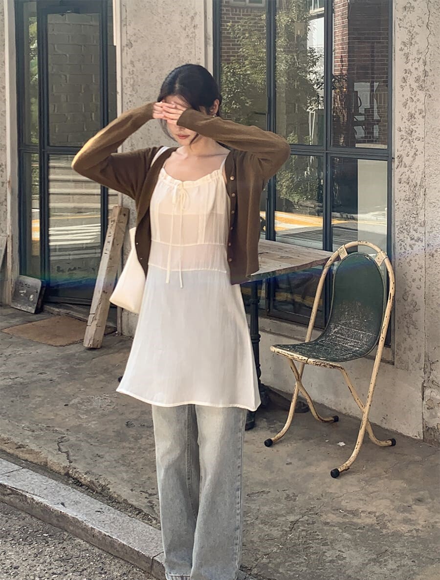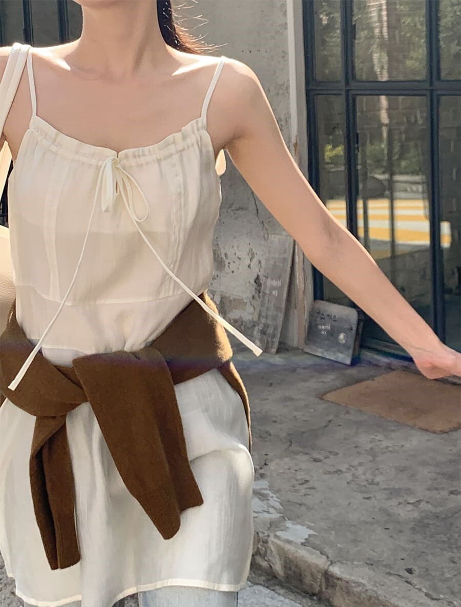■ 總長85cm 單面胸寬42cm(可調節) 單面腰寬39cm 裙襬寬66cm 繩長12cm