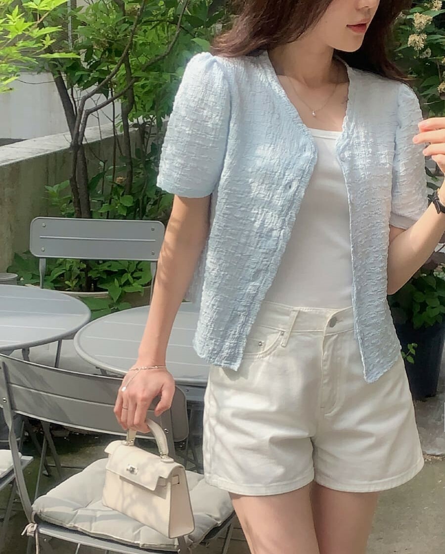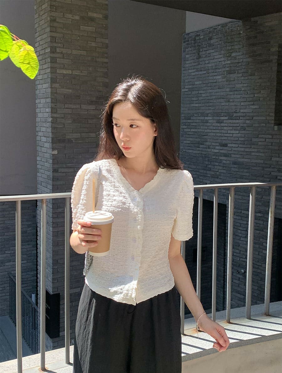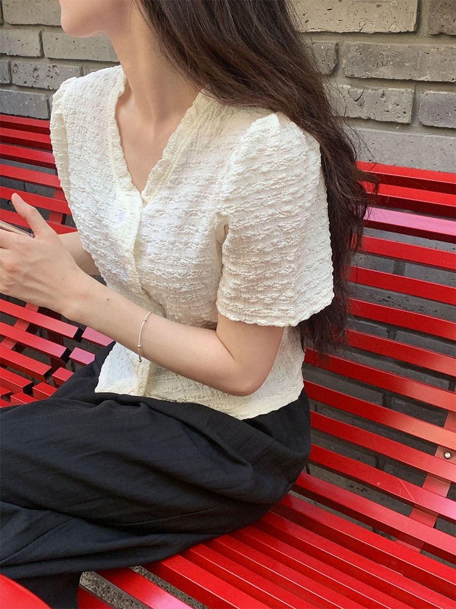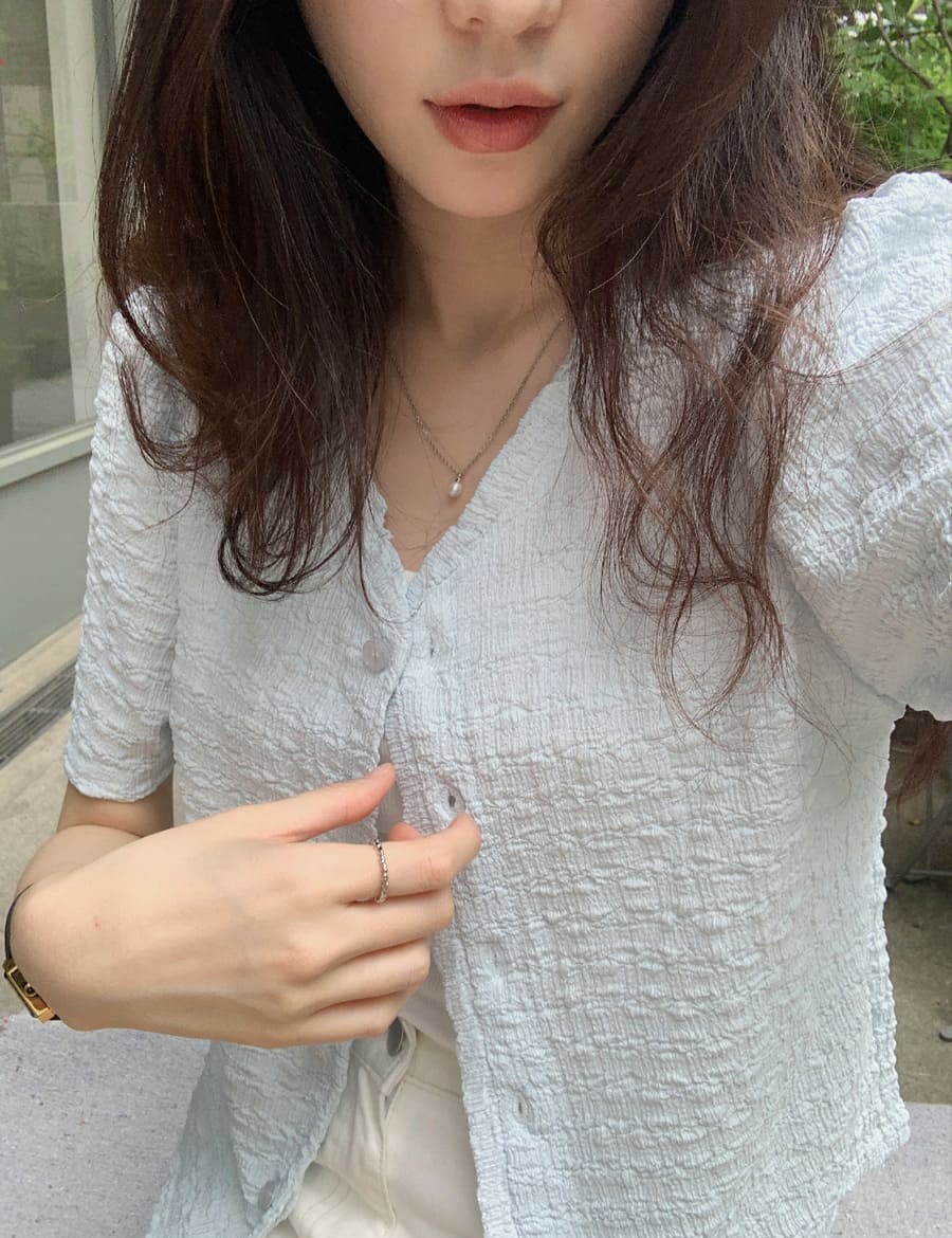 韓國Cherrykoko授權 甜蜜輕奢泡泡皺感排釦衫