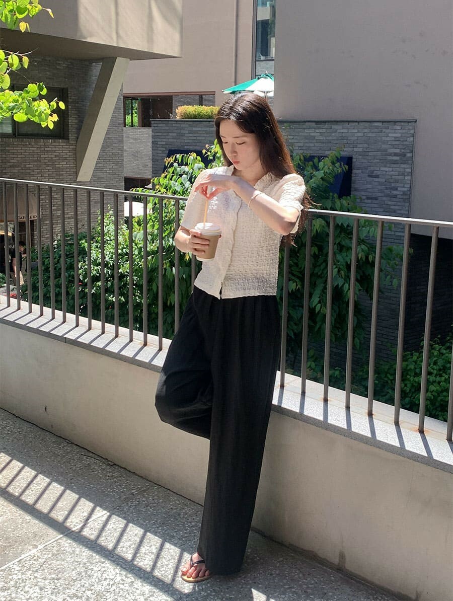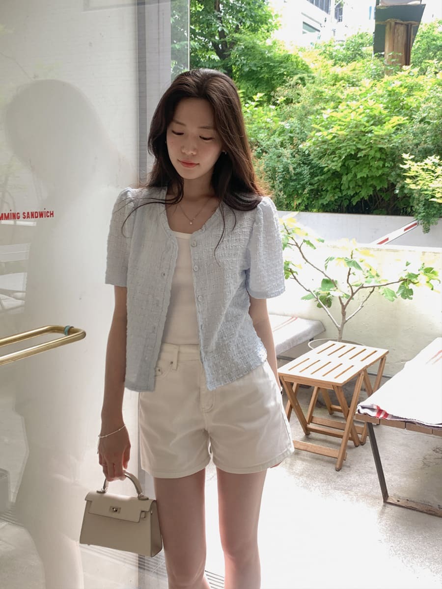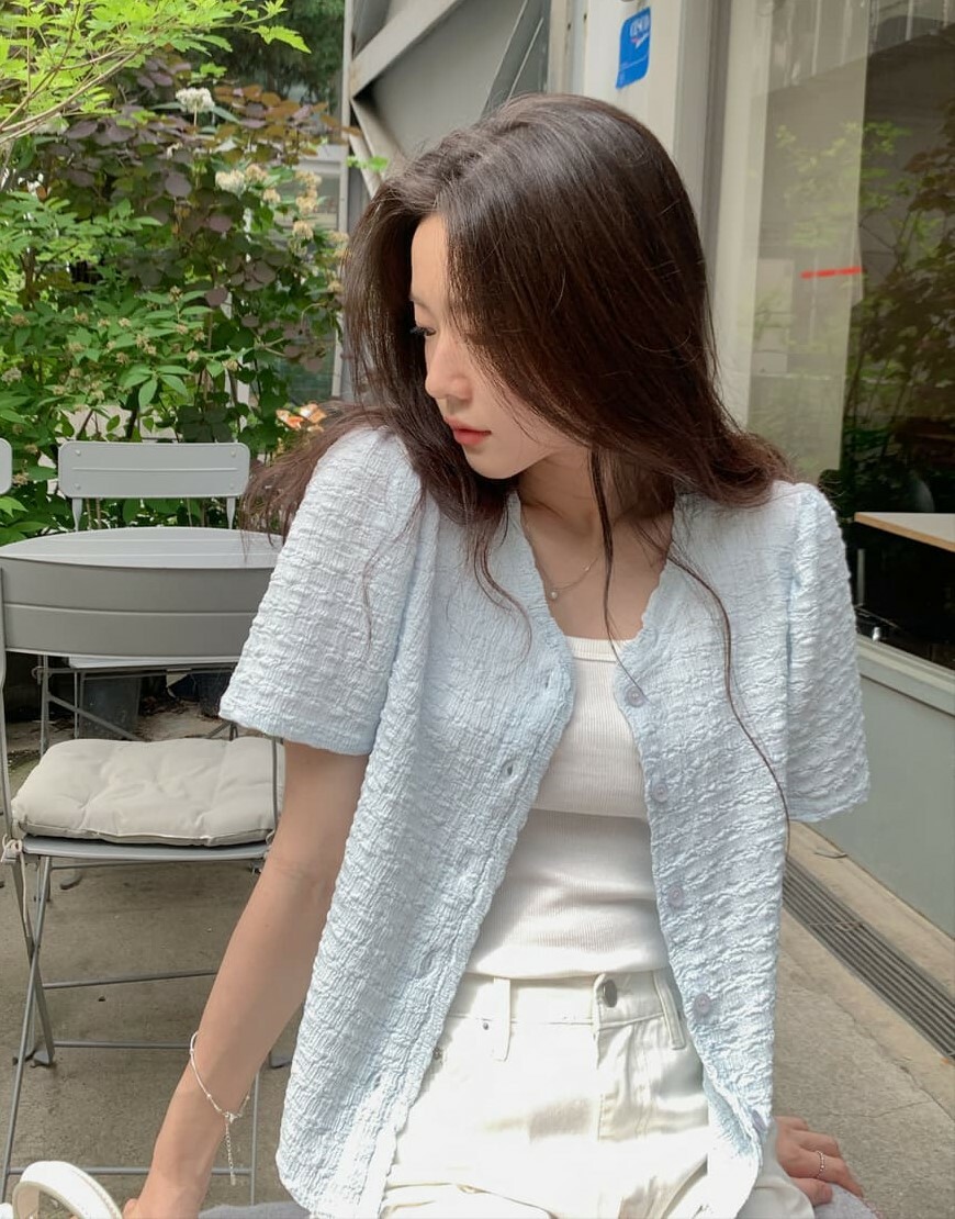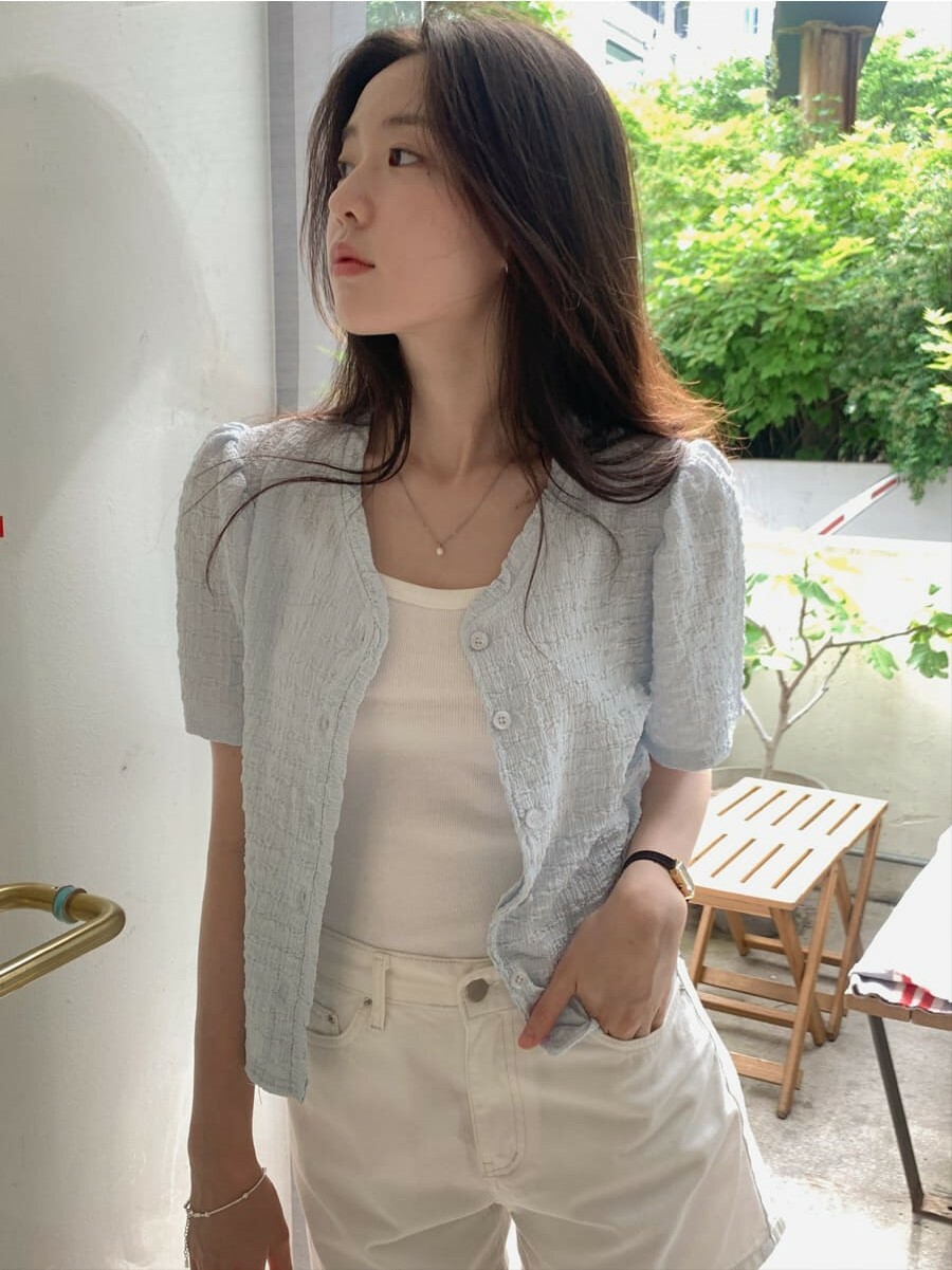 韓國Cherrykoko授權 甜蜜輕奢泡泡皺感排釦衫