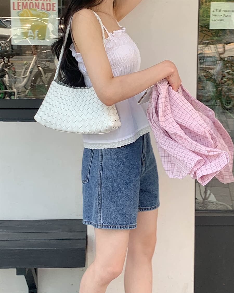 ■ M:總長43cm 單面腰寬32cm 單面臀寬54cm 單面大腿寬32cm 褲檔長35cm 褲口寬28cm
