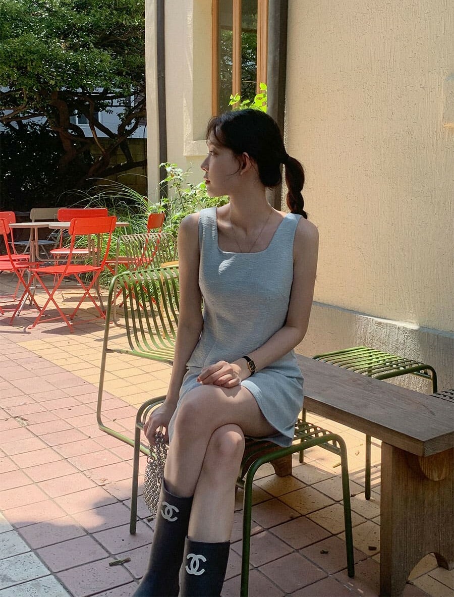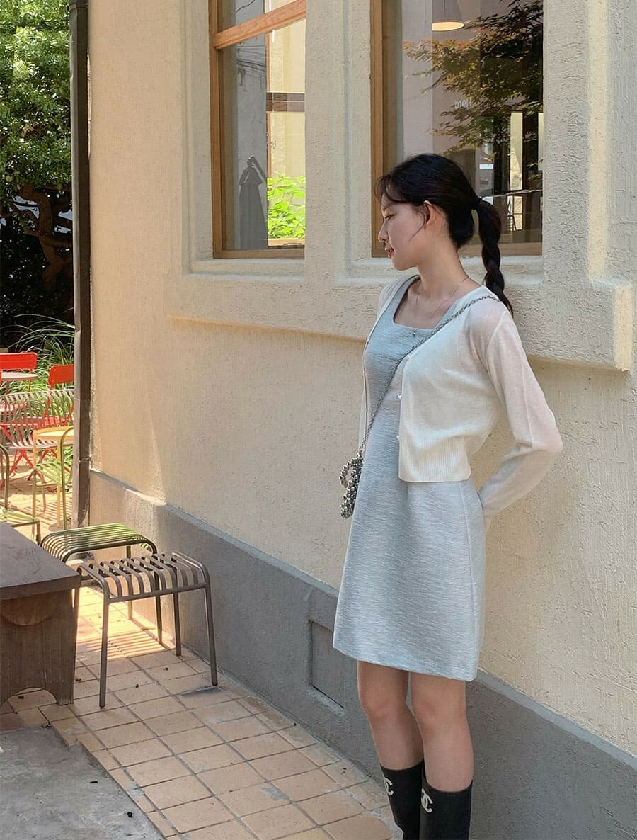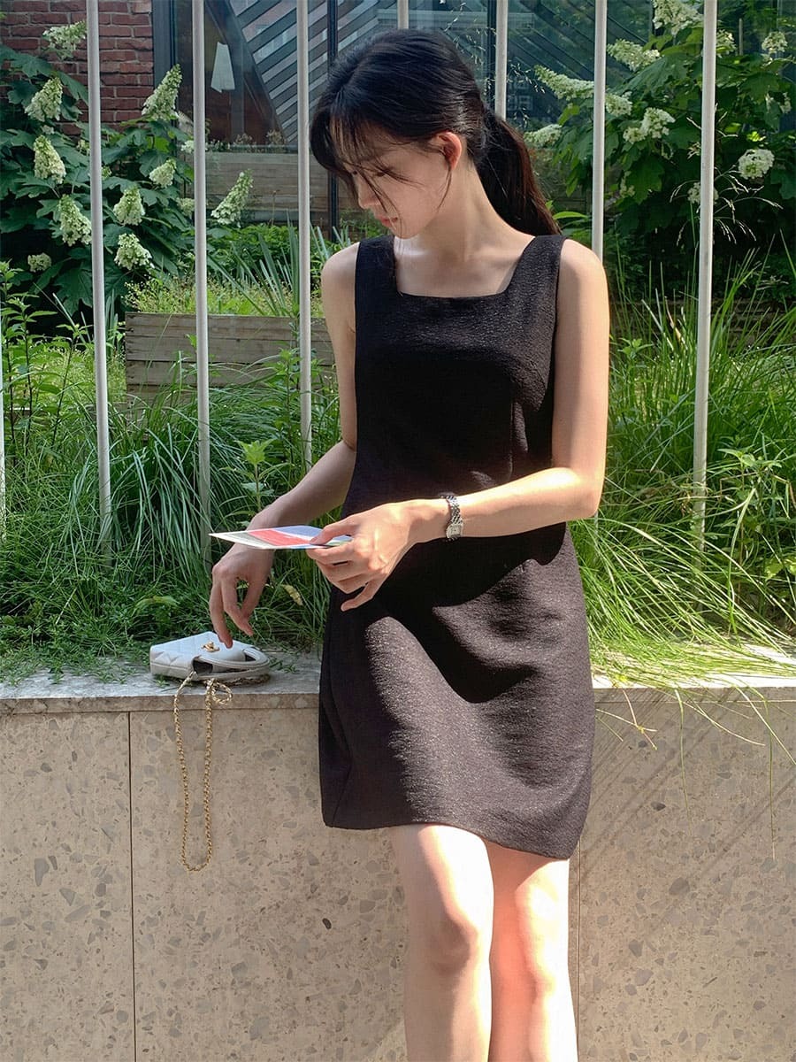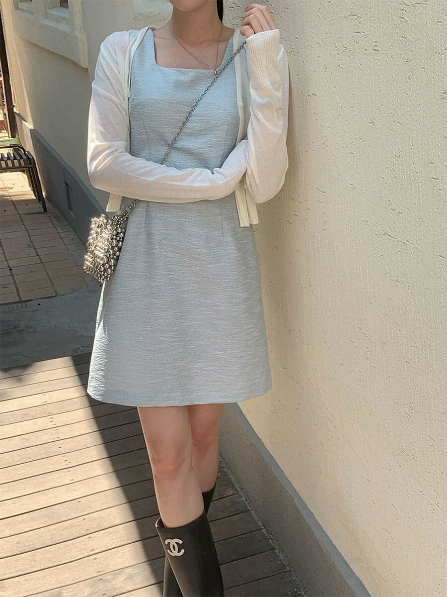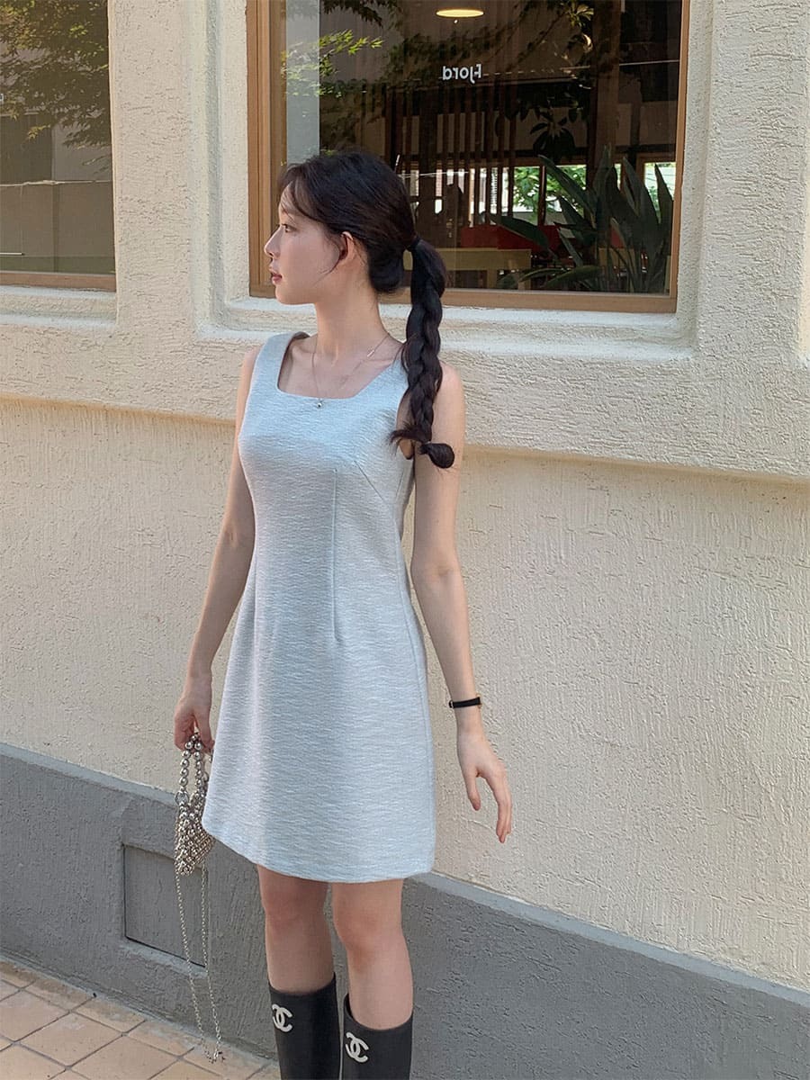 韓國Cherrykoko授權 香檳少女粗花呢方領背心洋裝【MADE, CRKO】系列