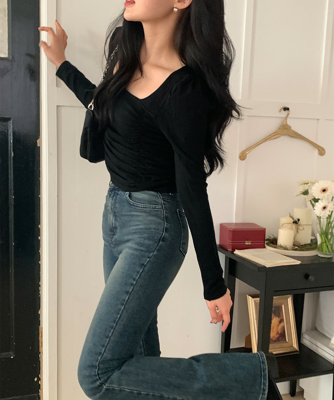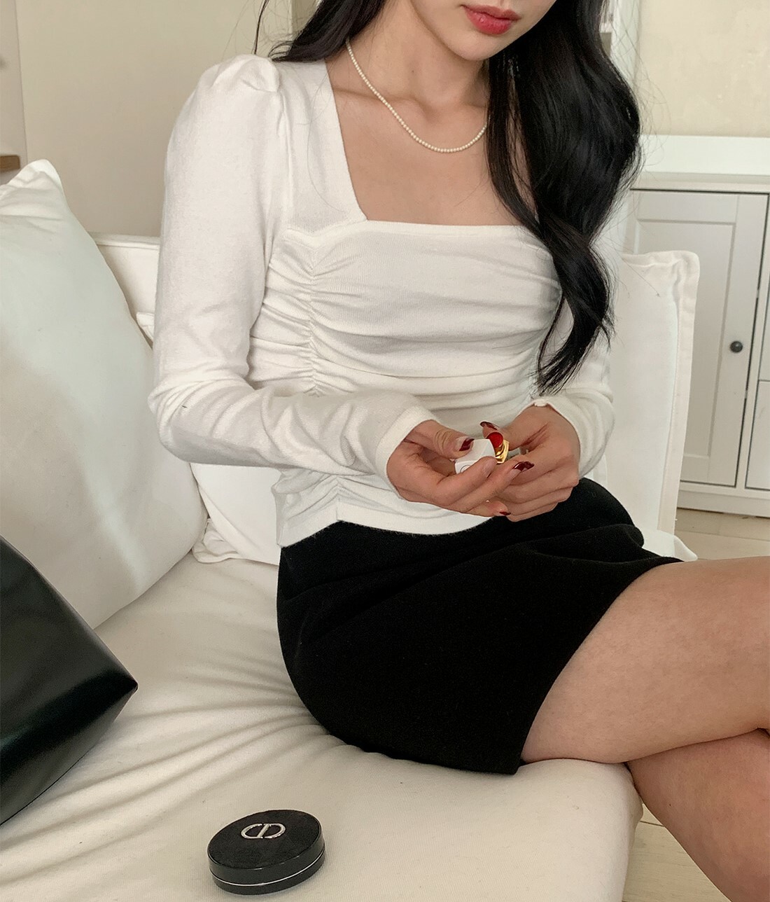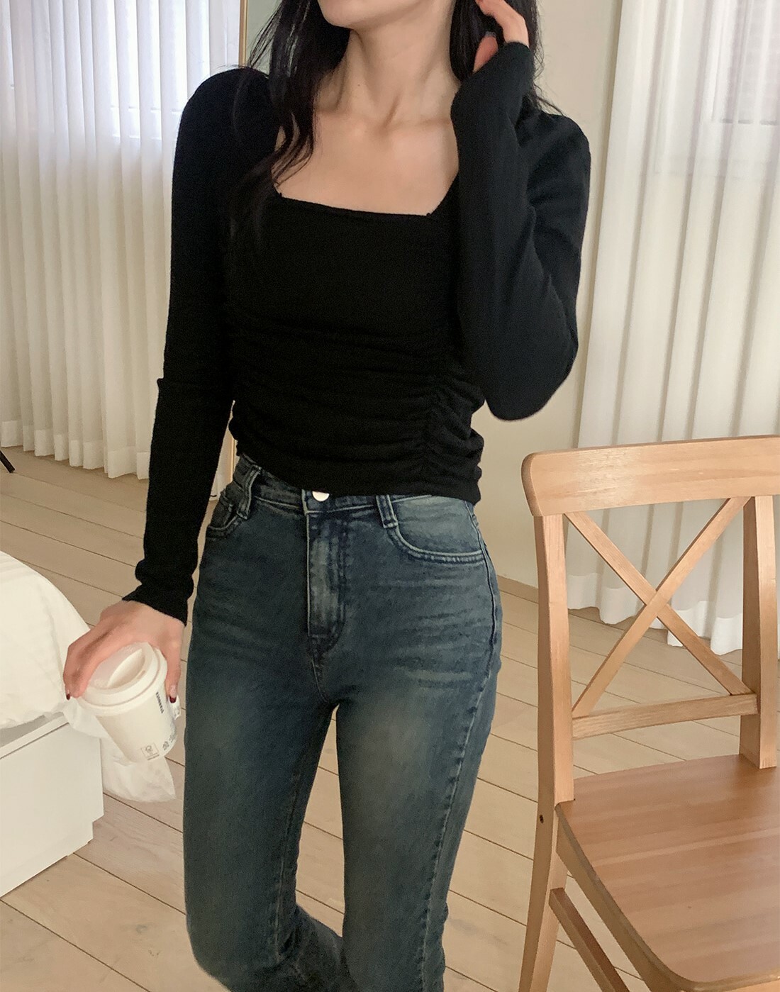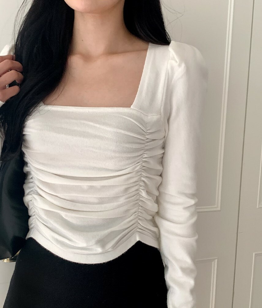 韓國Dejou授權 浪漫滿分皺褶方領修身上衣