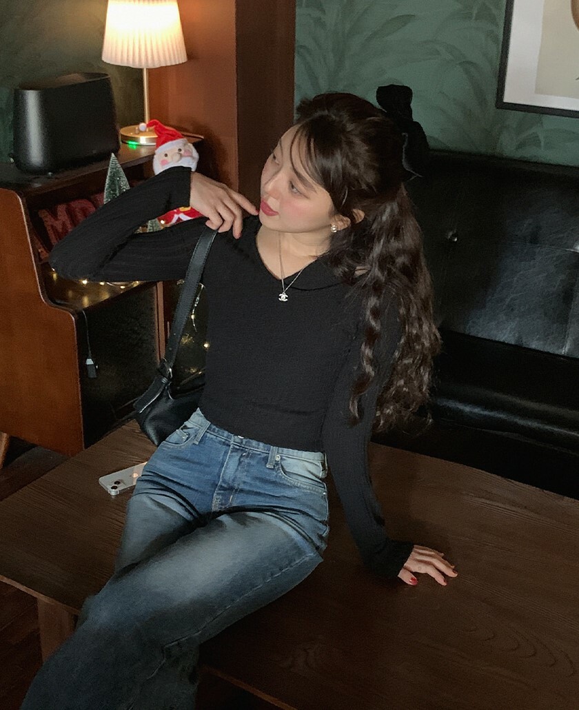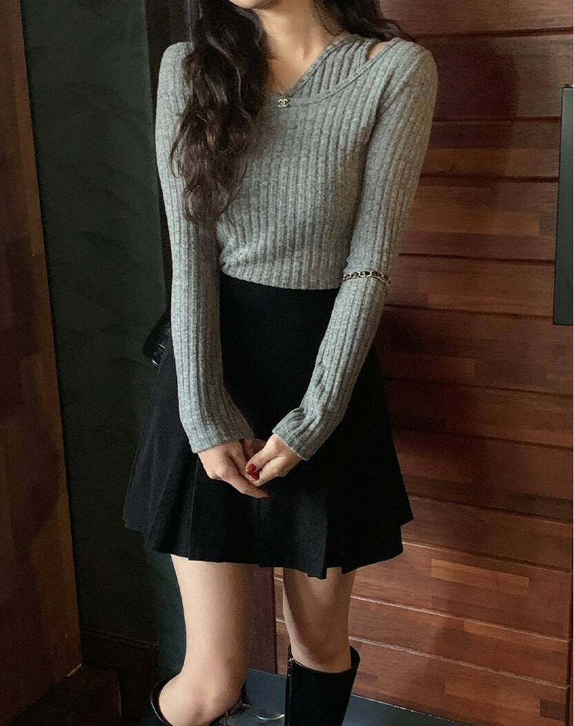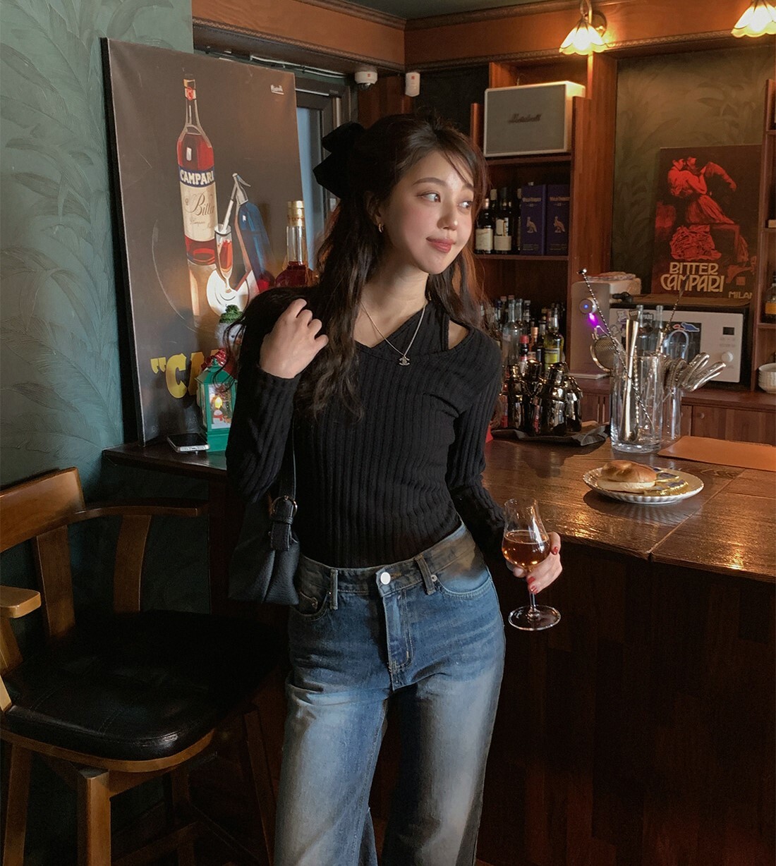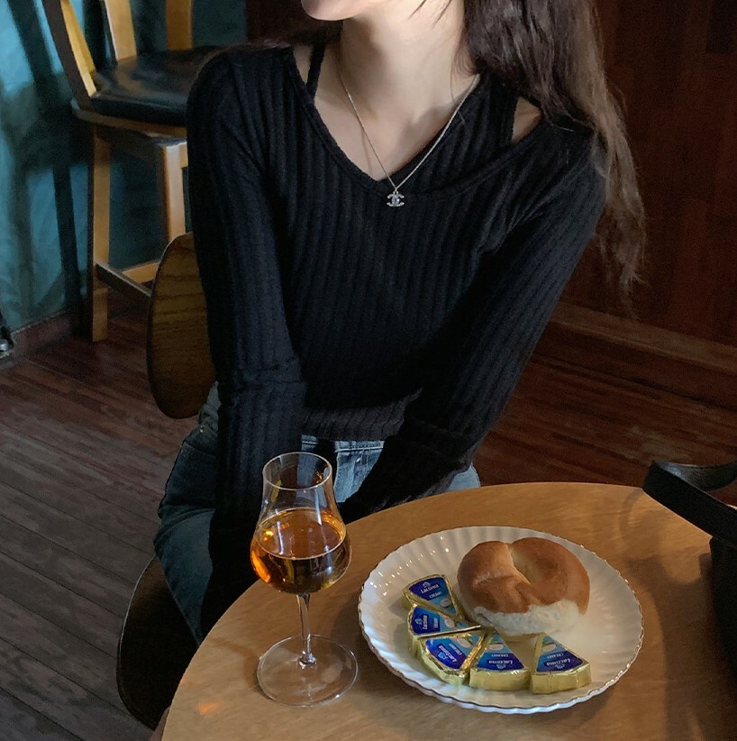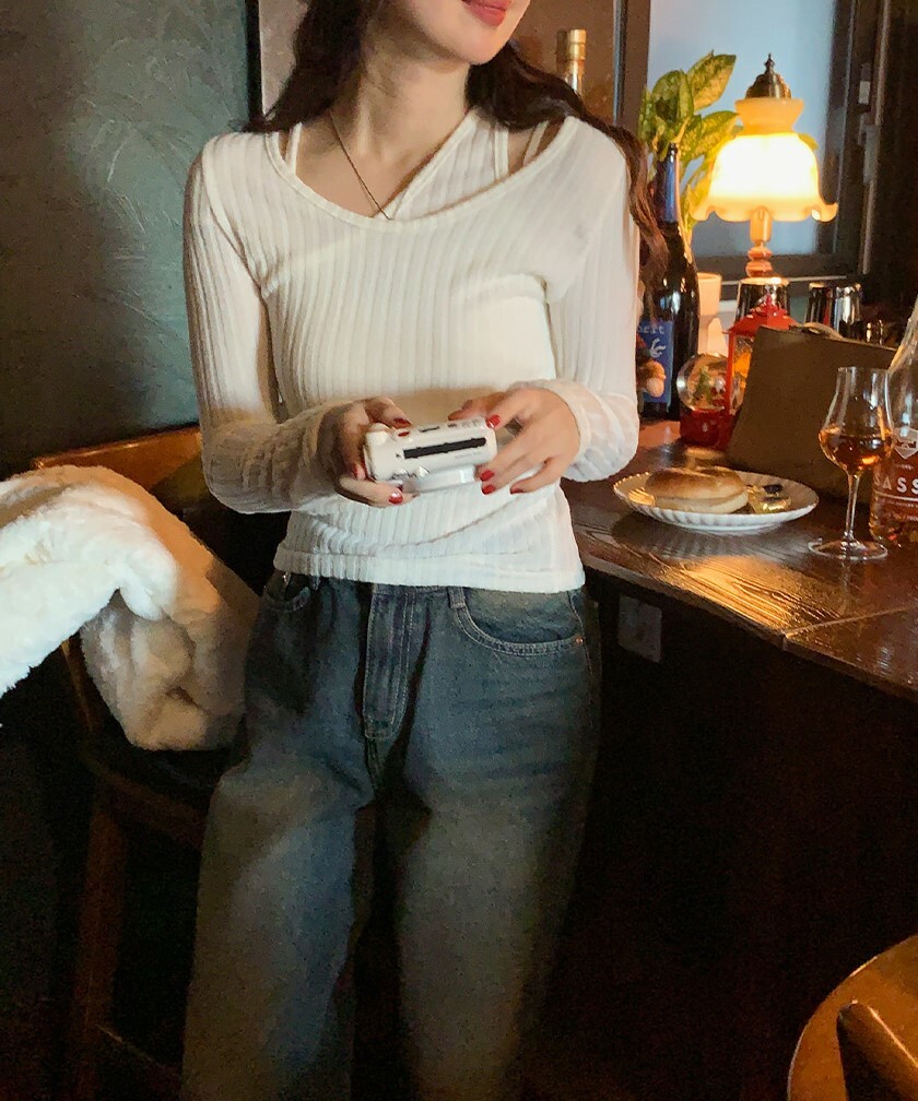 韓國Dejou授權 率性少女假兩件背心設計羅紋上衣