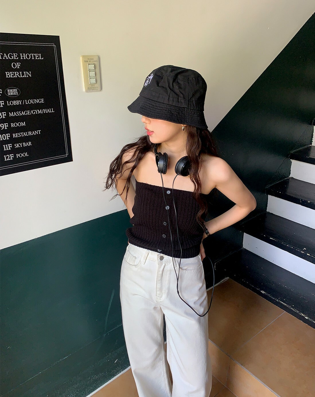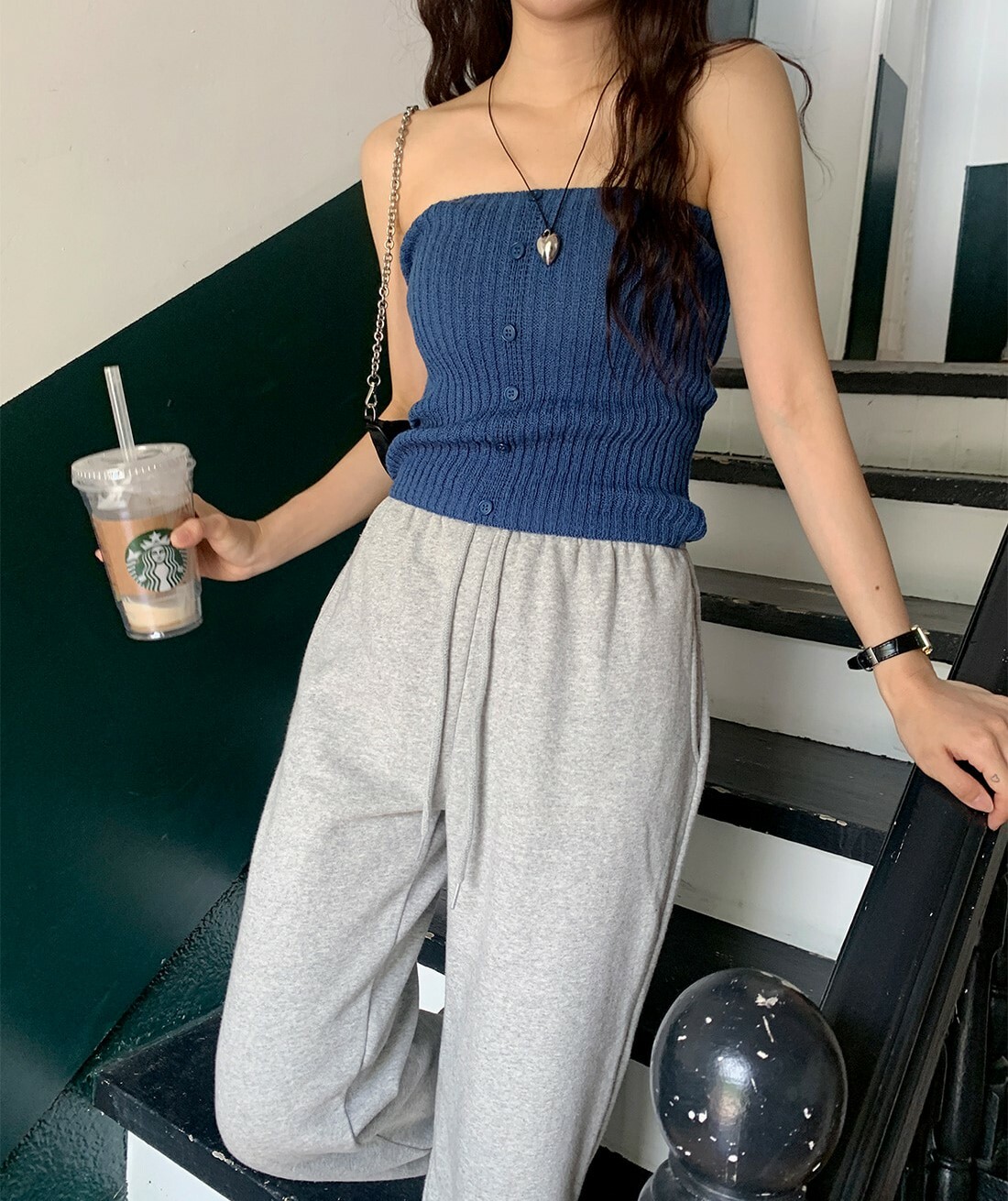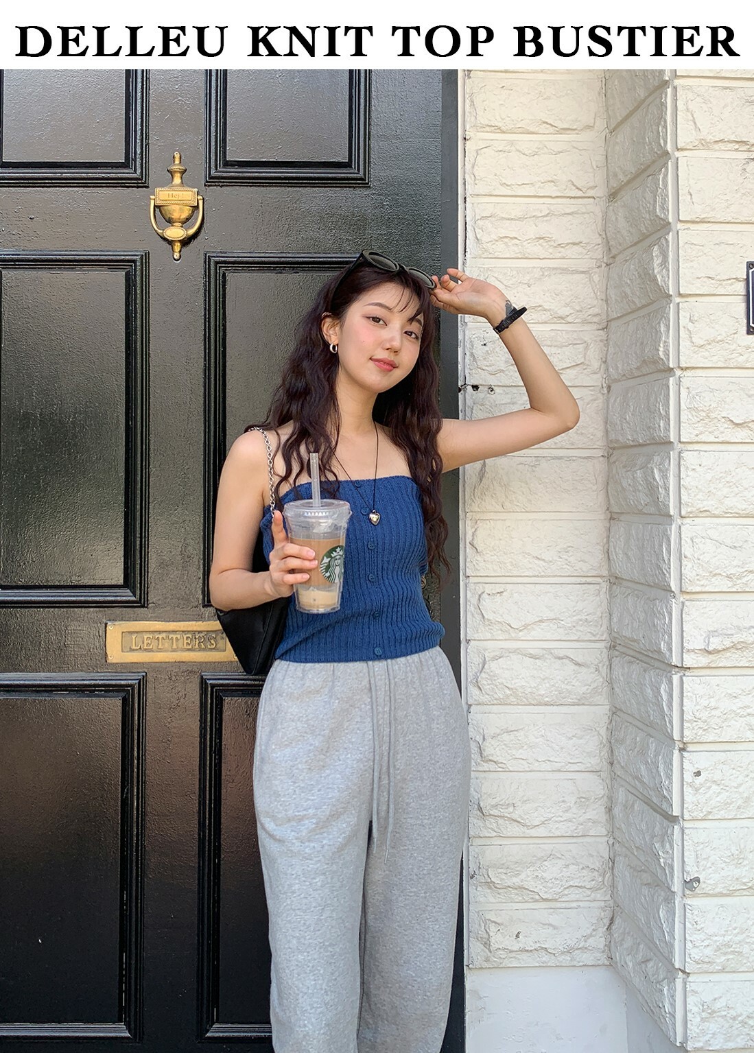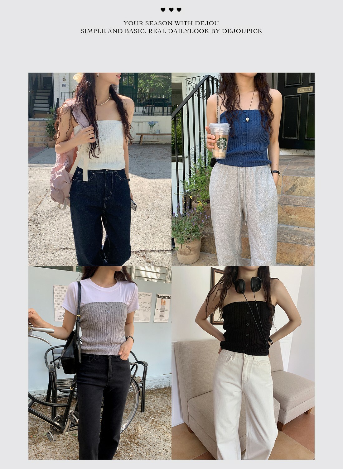 韓國Dejou授權 美式甜心排扣針織抹胸平口上衣