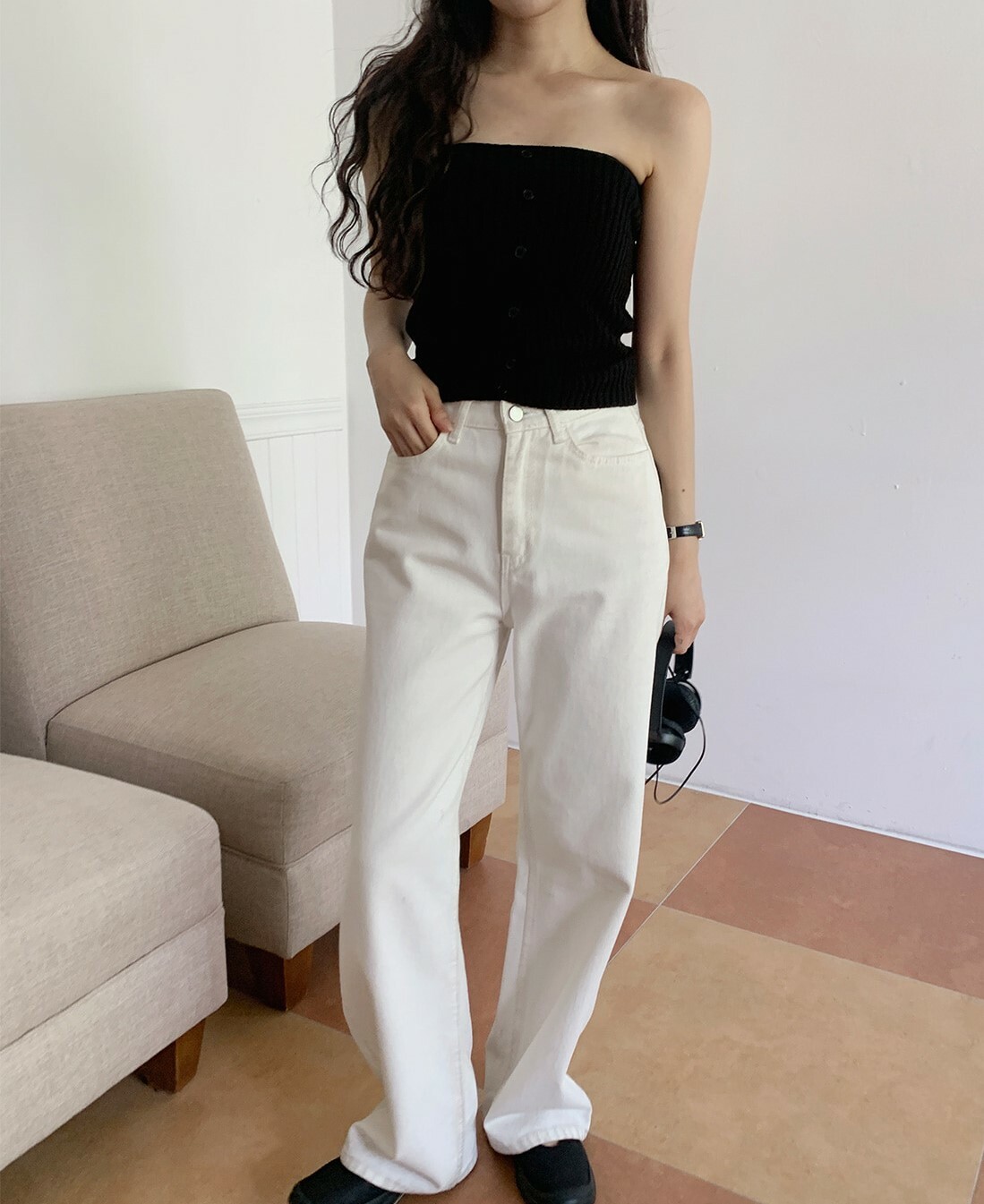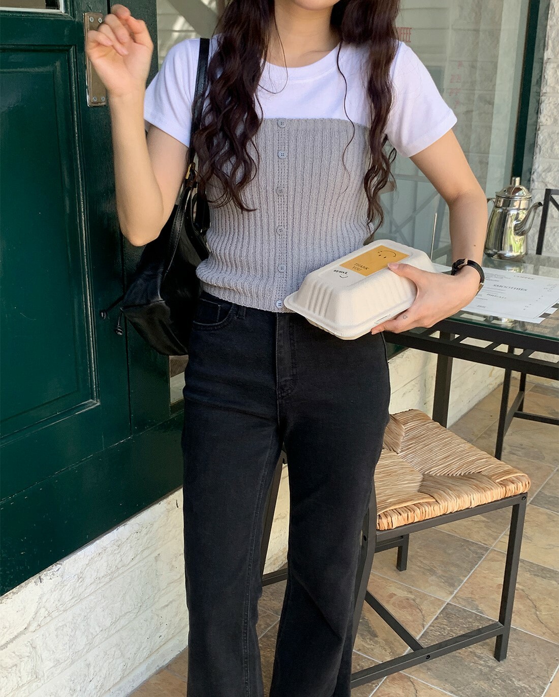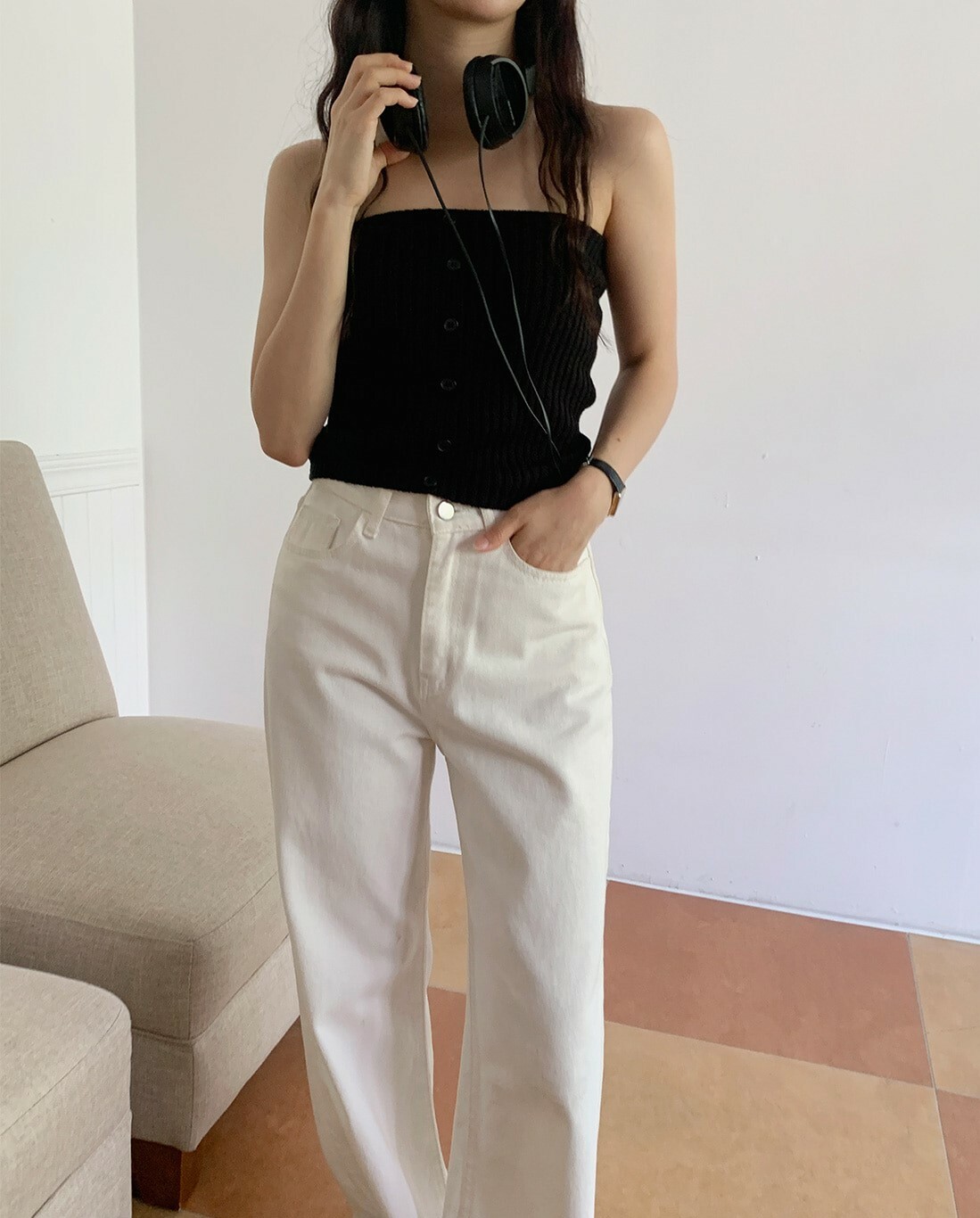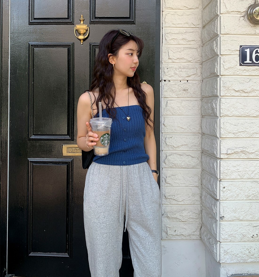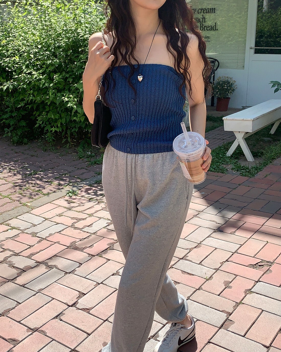 韓國Dejou授權 美式甜心排扣針織抹胸平口上衣