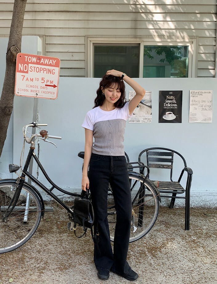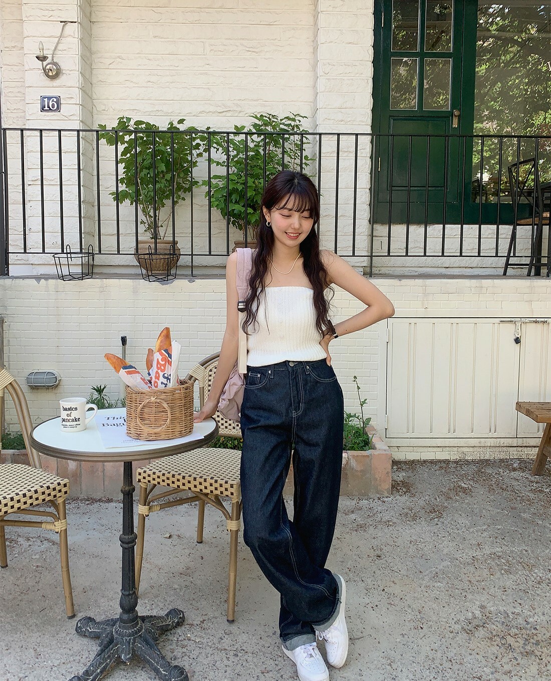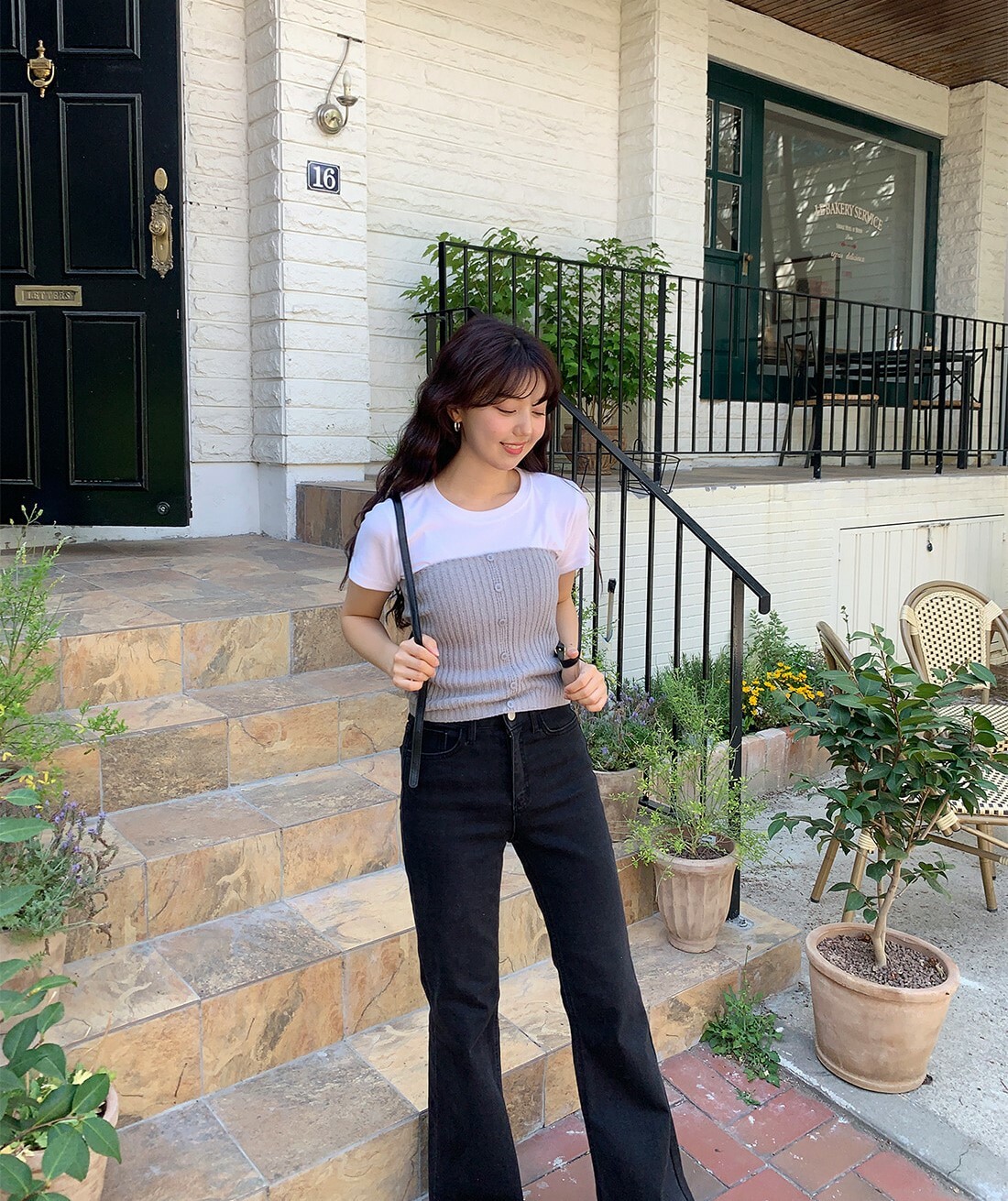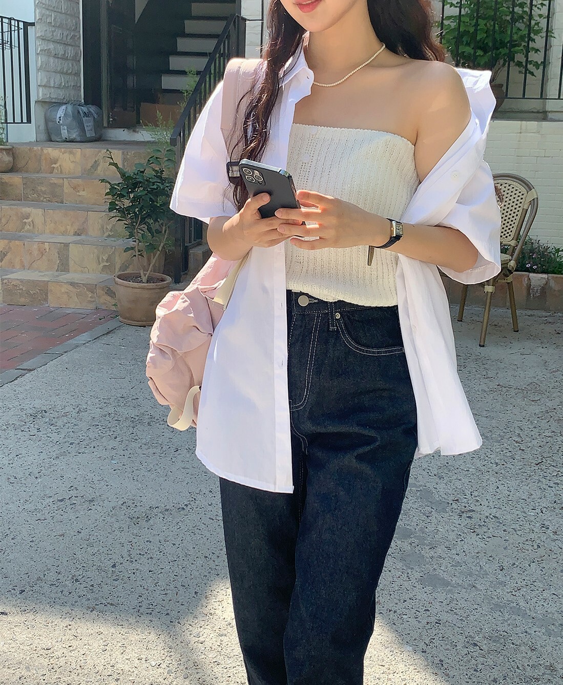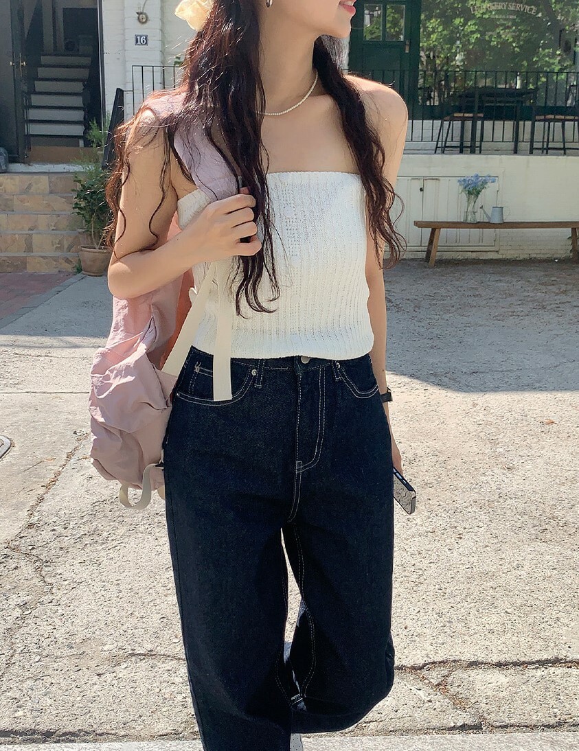 韓國Dejou授權 美式甜心排扣針織抹胸平口上衣