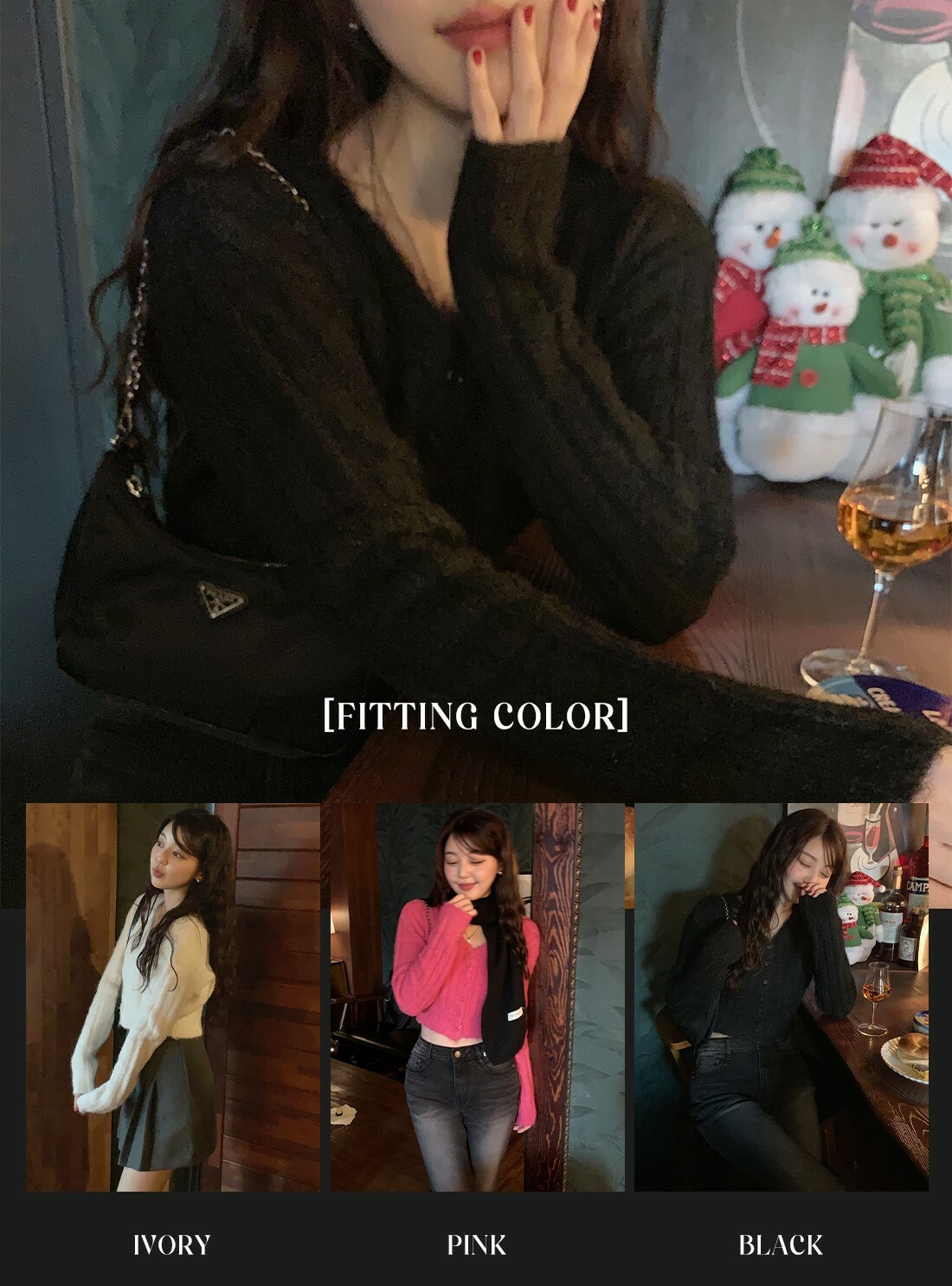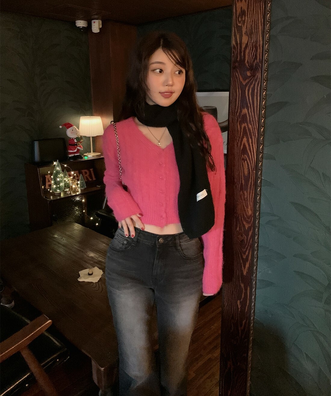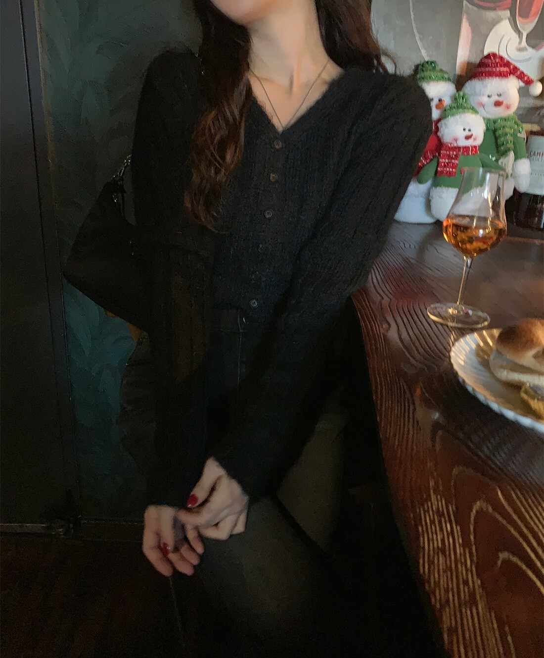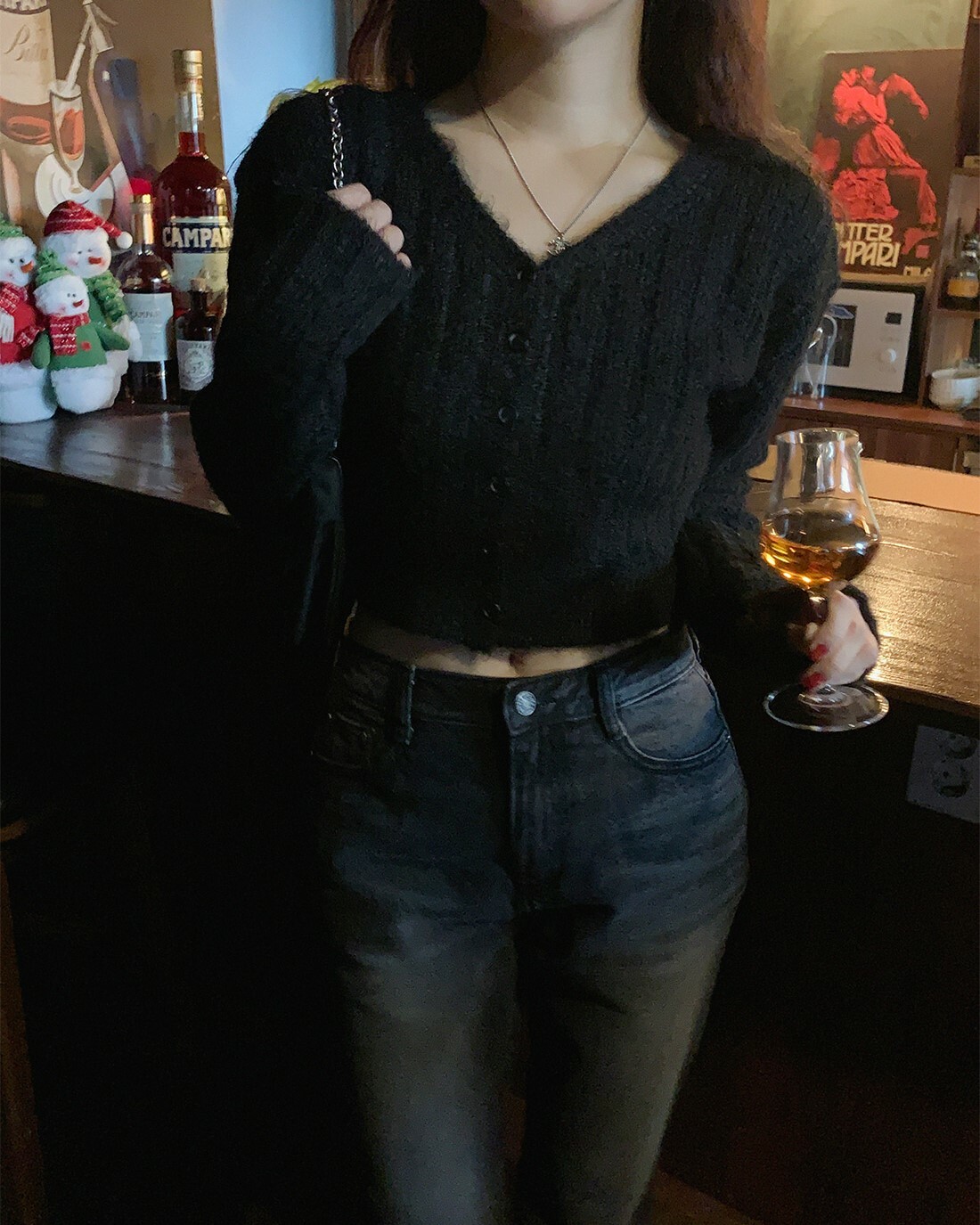 韓國Dejou授權 韓系精緻毛絨感V領短版排釦衫