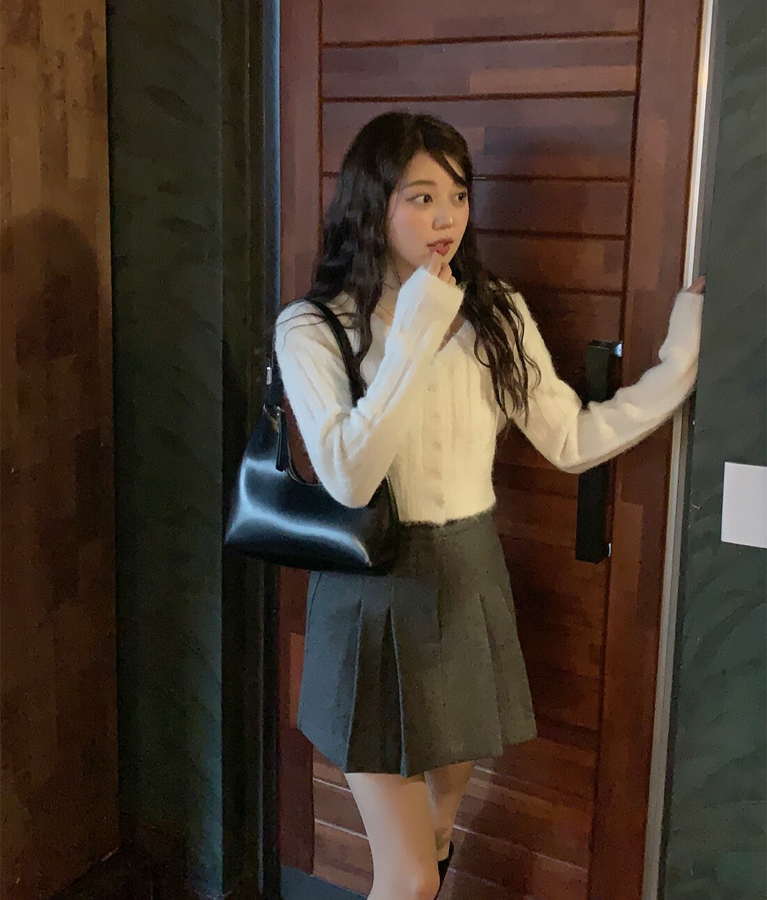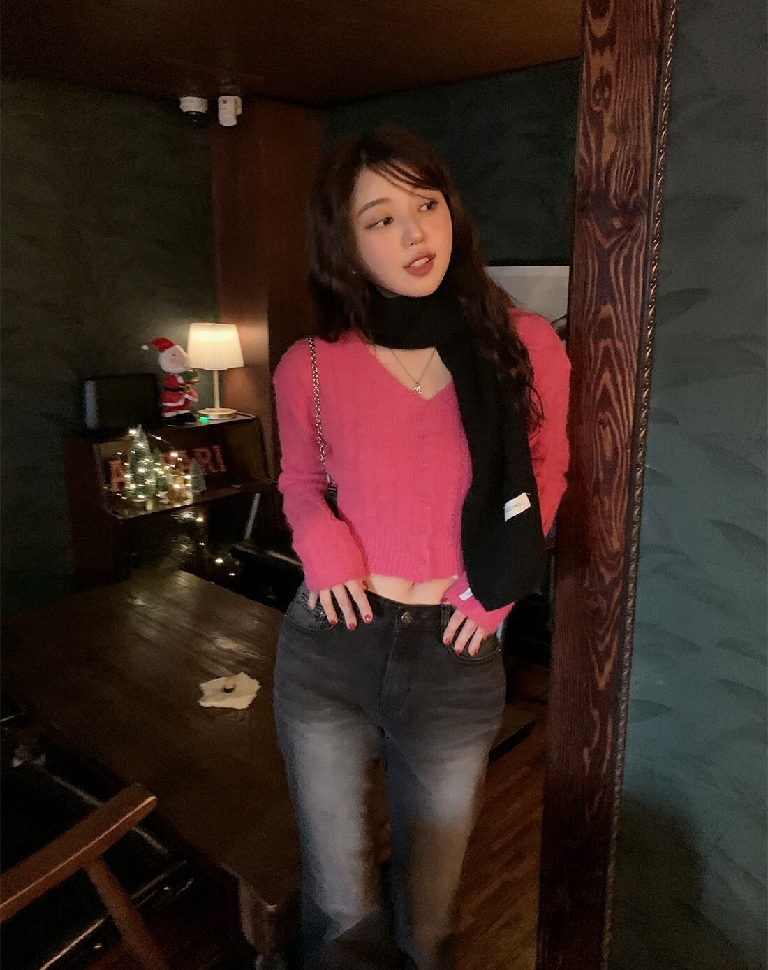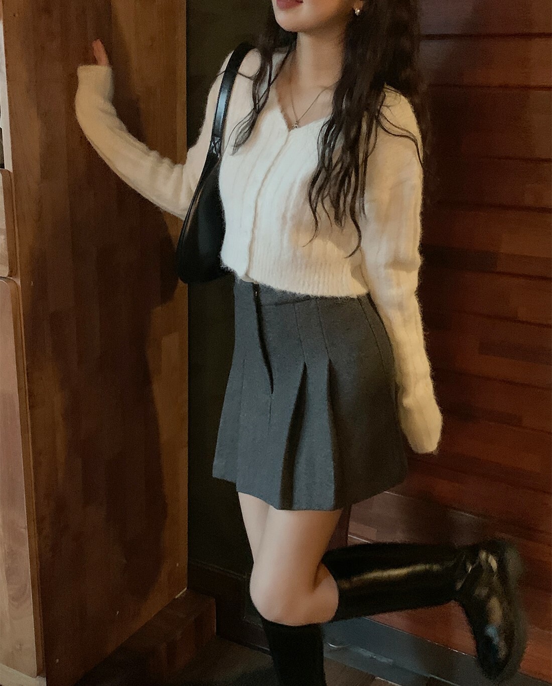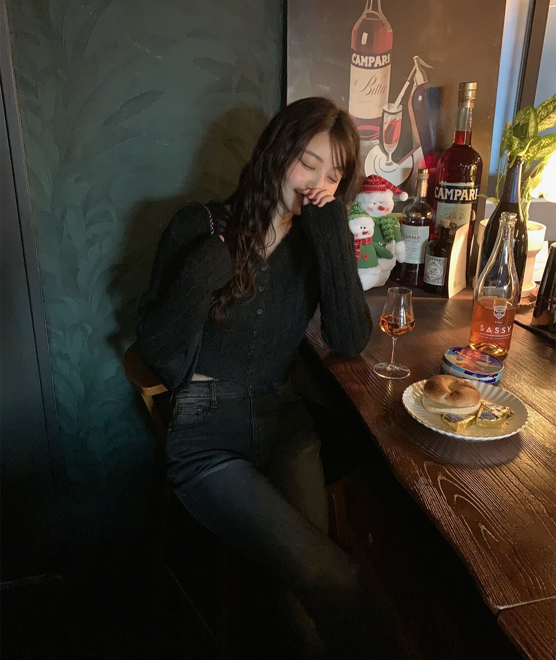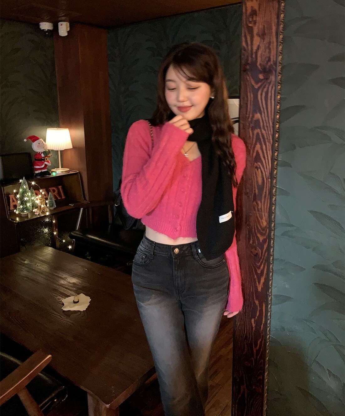 韓國Dejou授權 韓系精緻毛絨感V領短版排釦衫