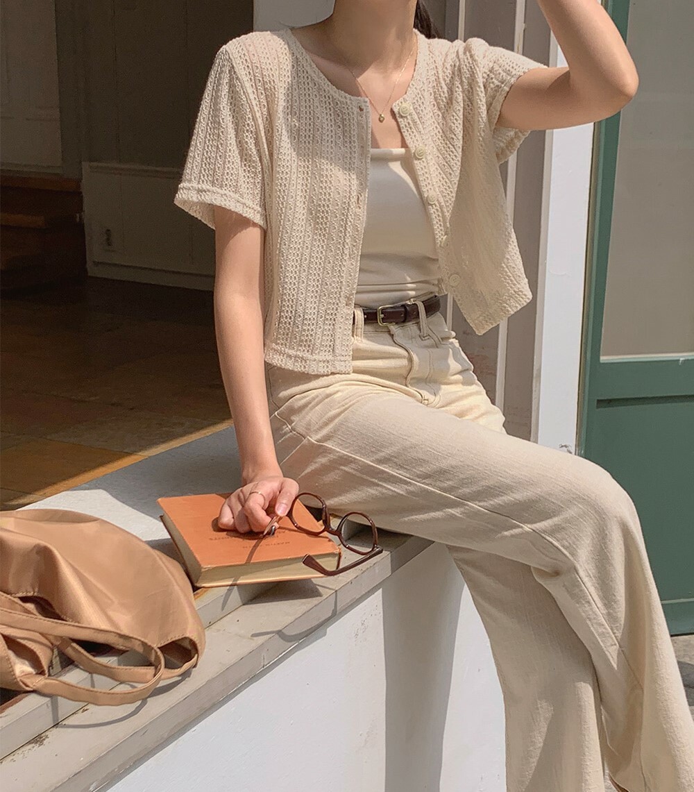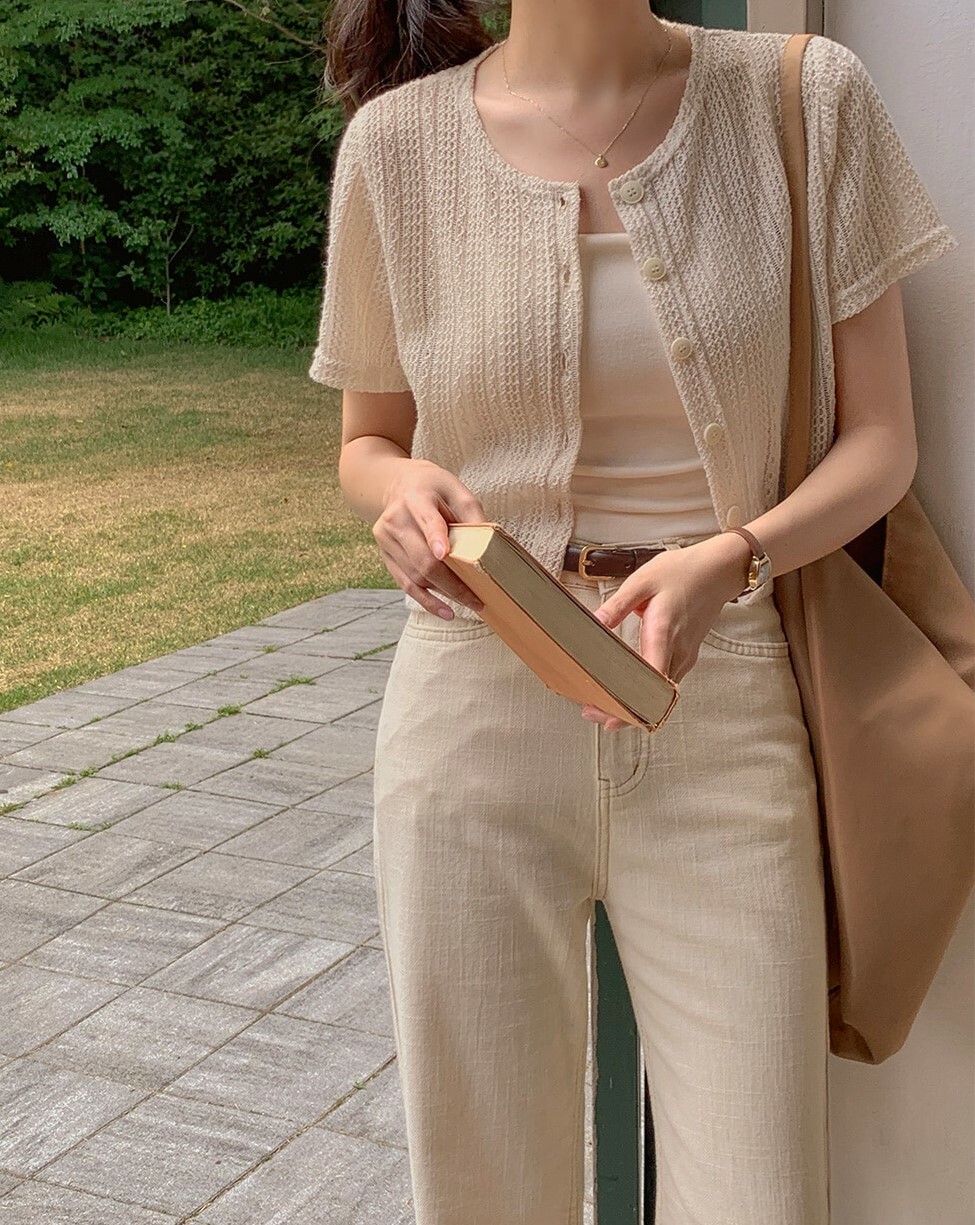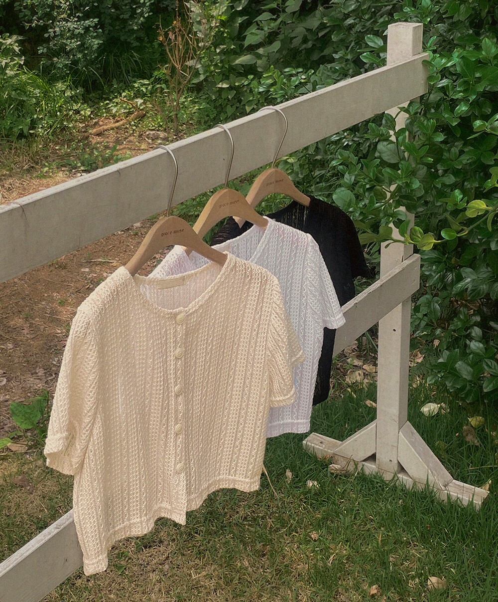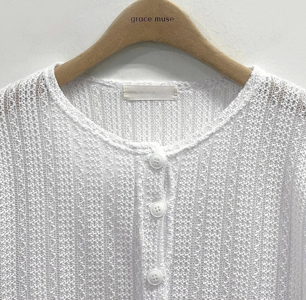 韓國grace muse授權 夏日復古氛圍編織三色排釦衫