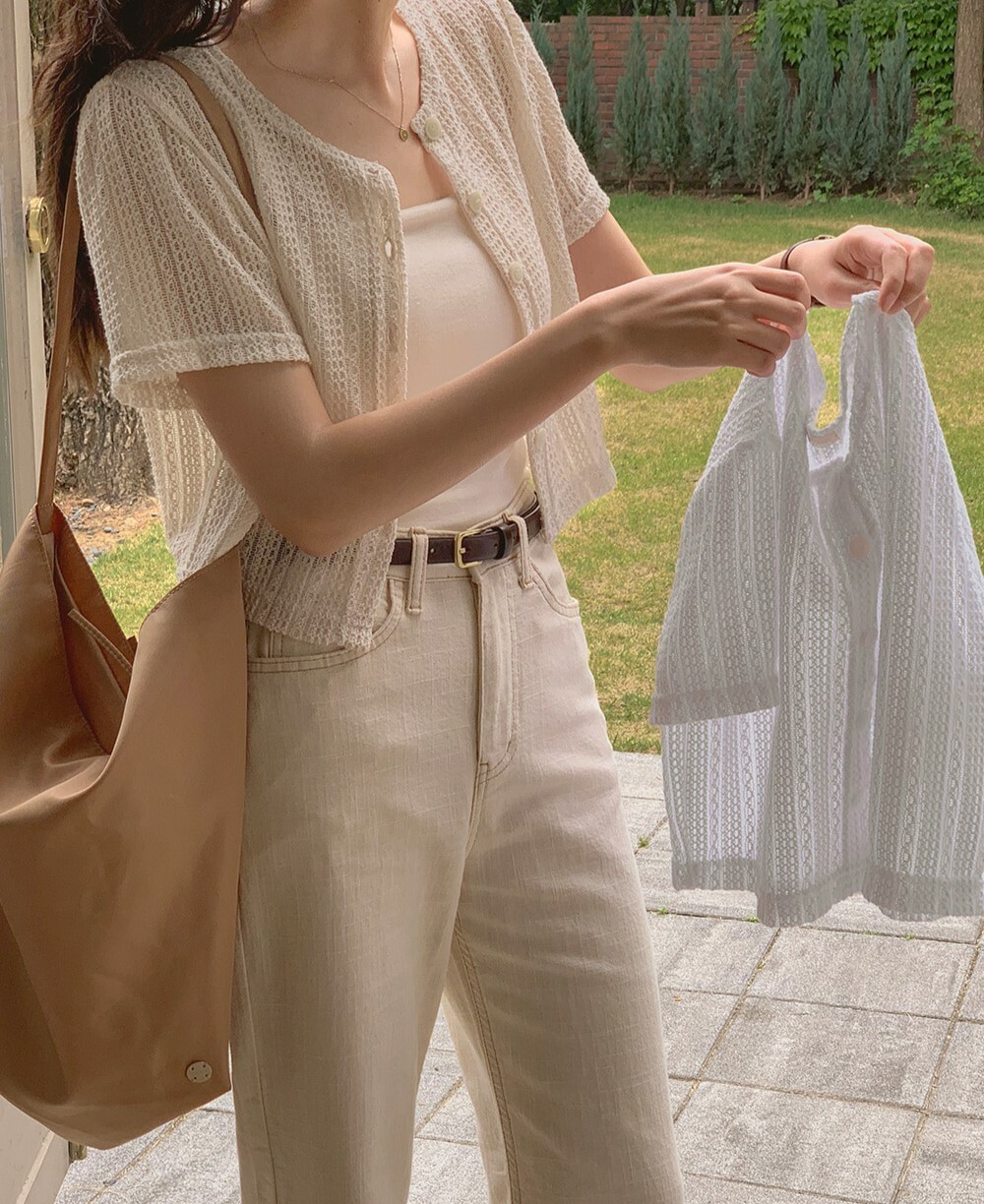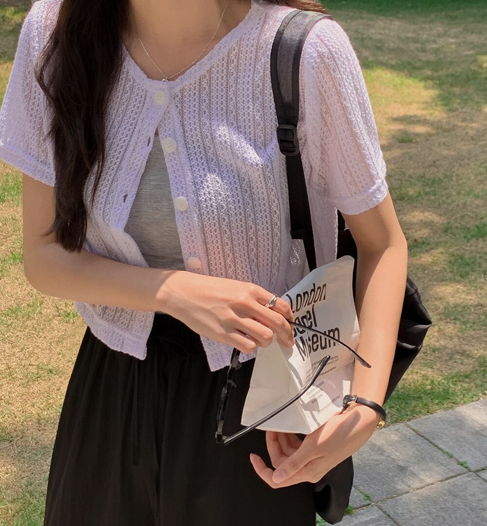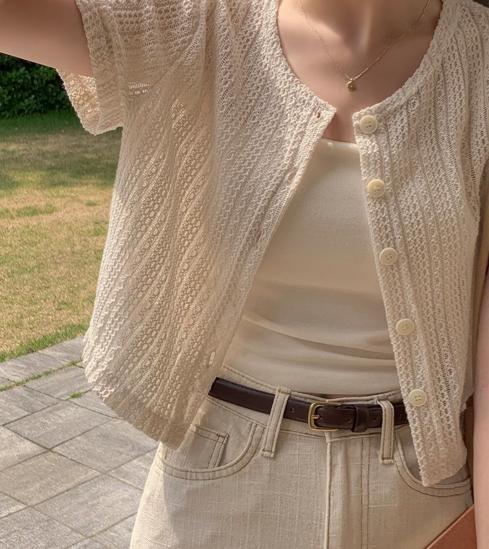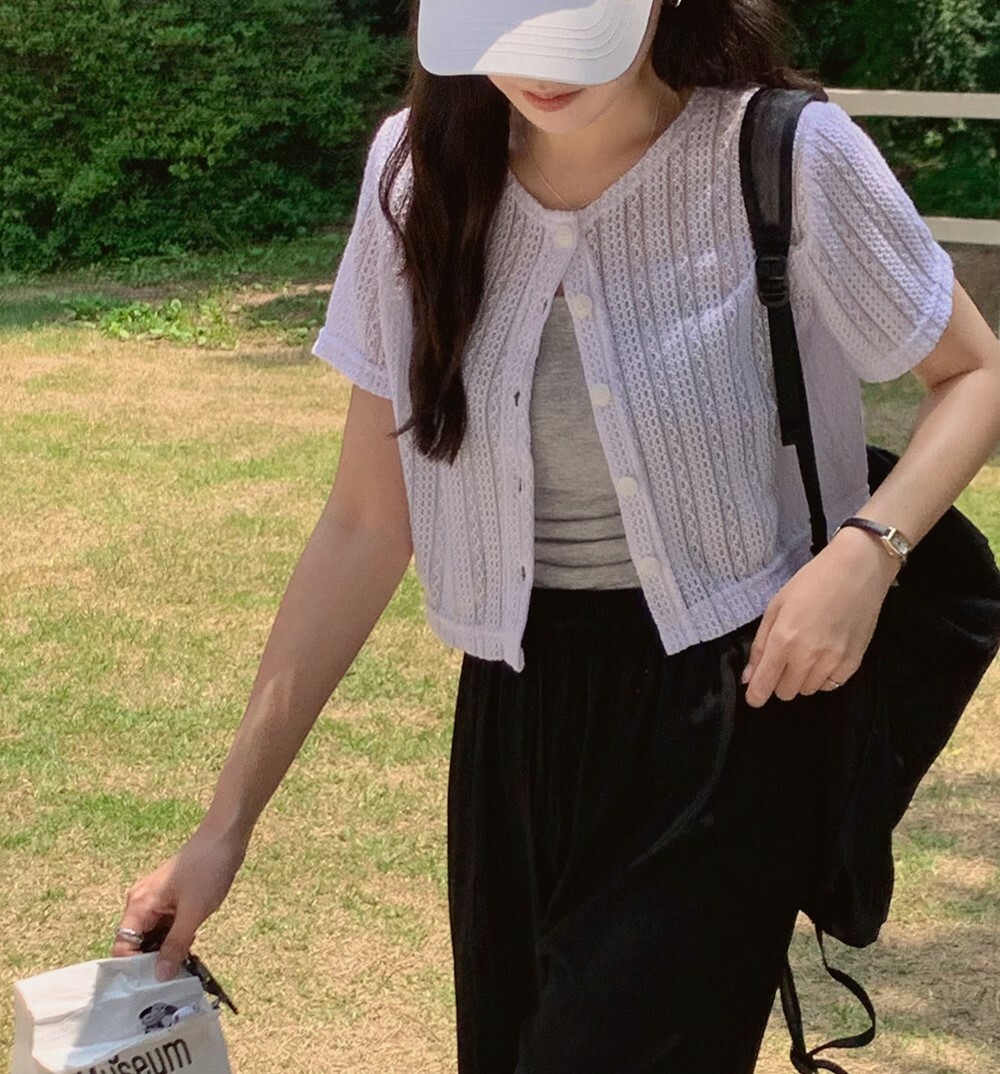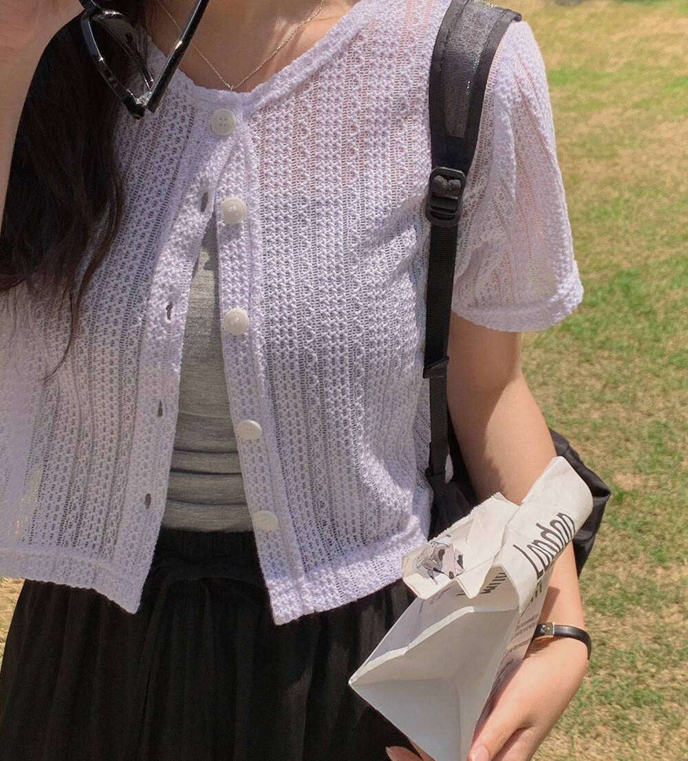 韓國grace muse授權 夏日復古氛圍編織三色排釦衫