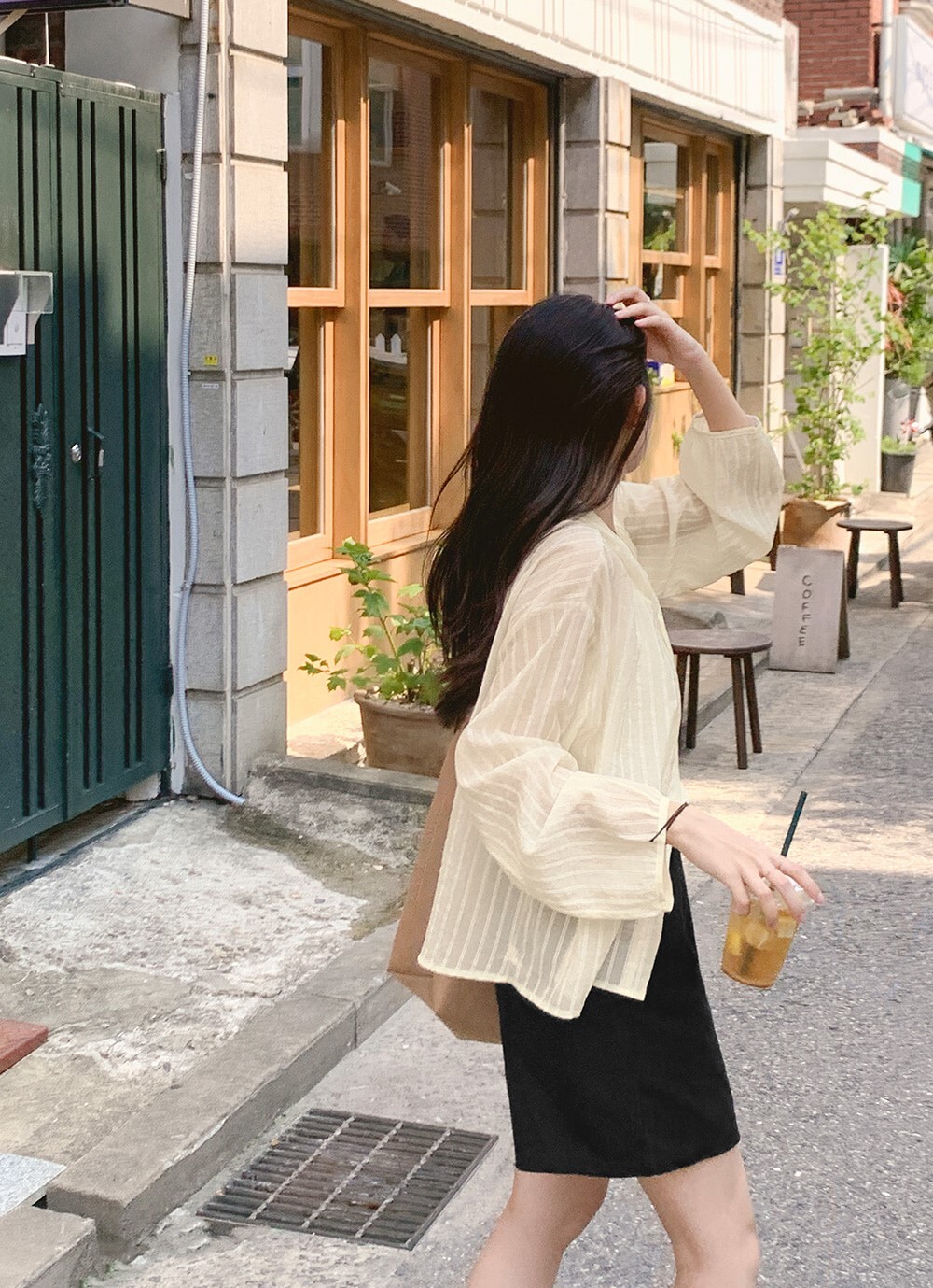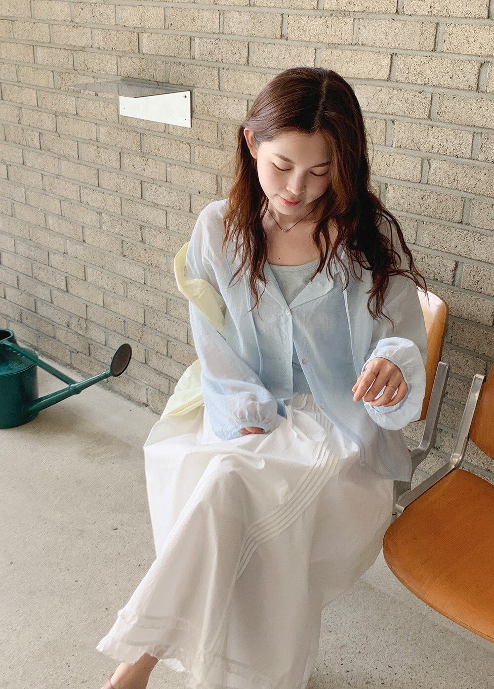 ■ 【罩衫】總長64cm 肩寬54cm 單面胸寬60cm 下擺寬57cm 袖長50.5cm 袖口12cm