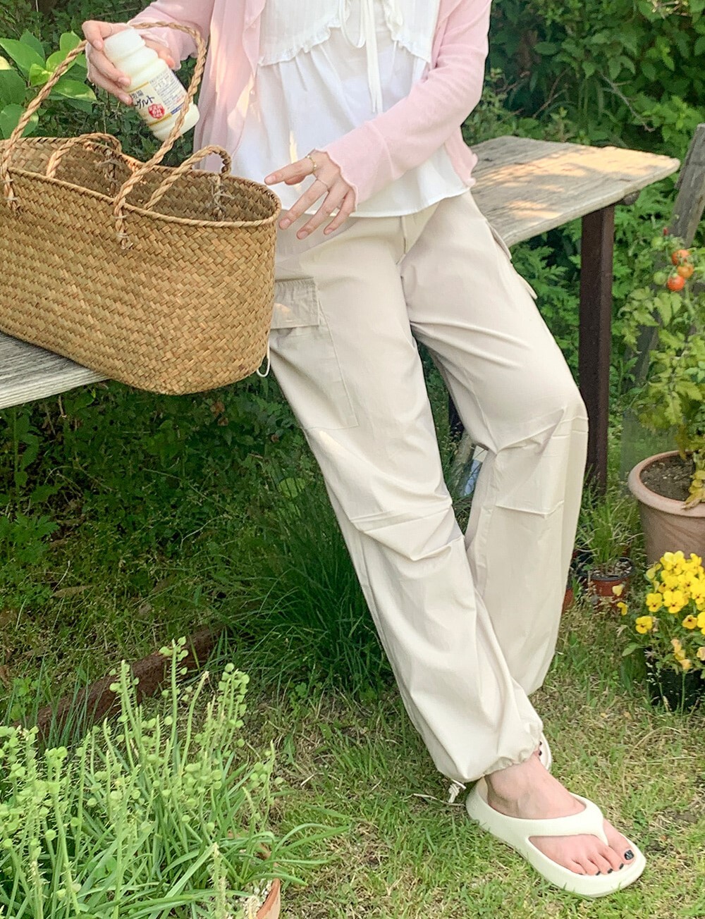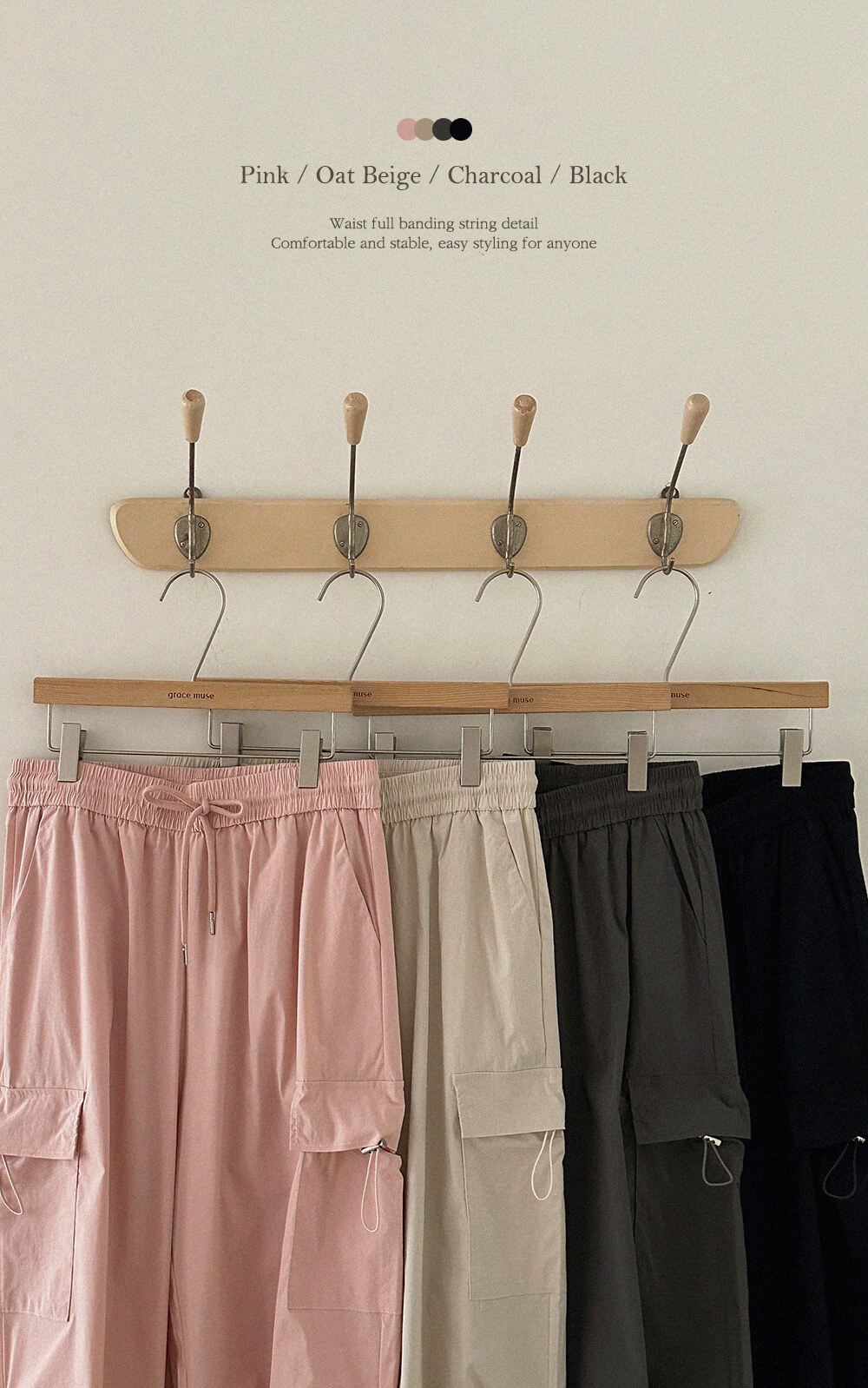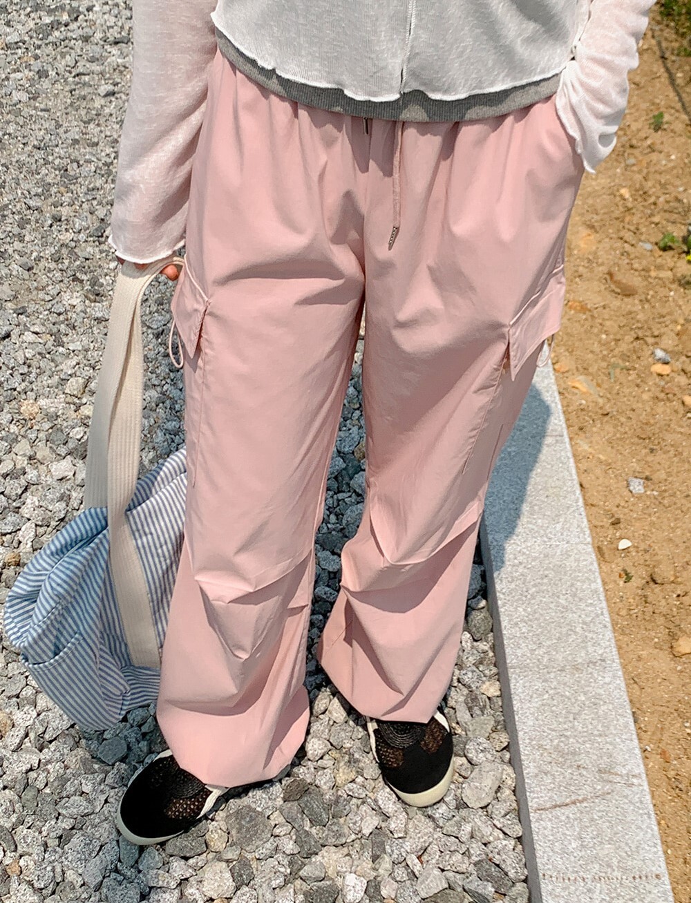 ■ 總長101cm 單面腰寬36cm(鬆緊) 單面臀寬46cm 單面大腿寬33cm 褲檔長33cm 褲口寬26cm(可調節)