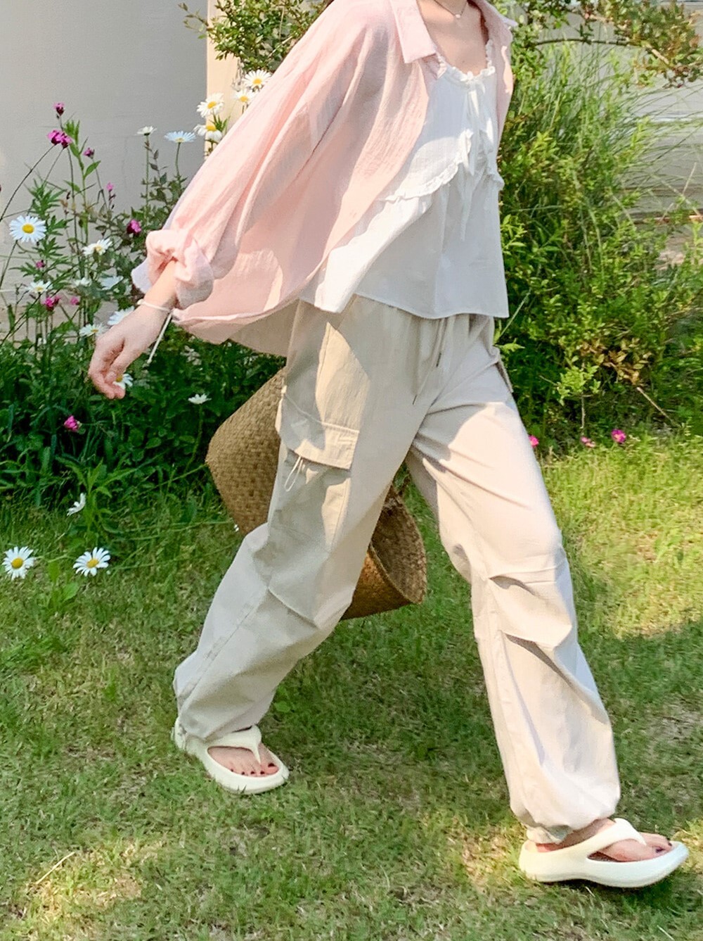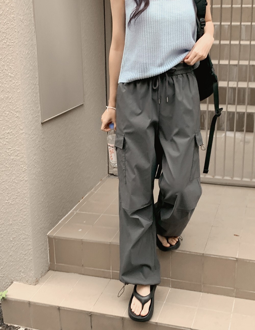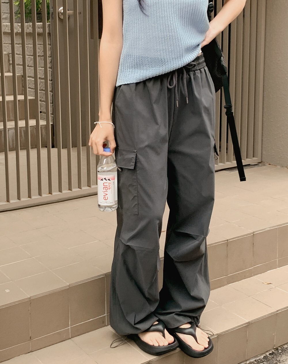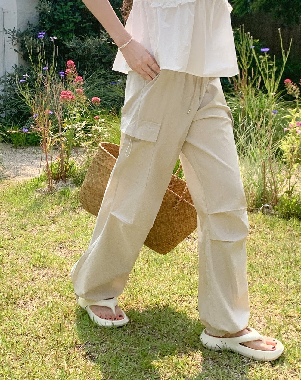 ■ 總長101cm 單面腰寬36cm(鬆緊) 單面臀寬46cm 單面大腿寬33cm 褲檔長33cm 褲口寬26cm(可調節)