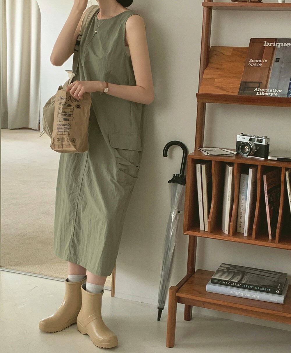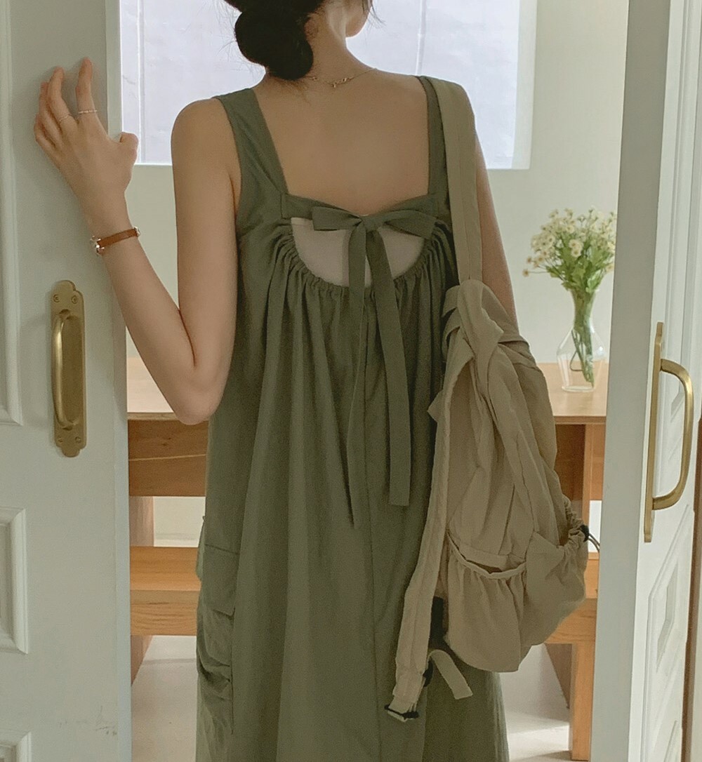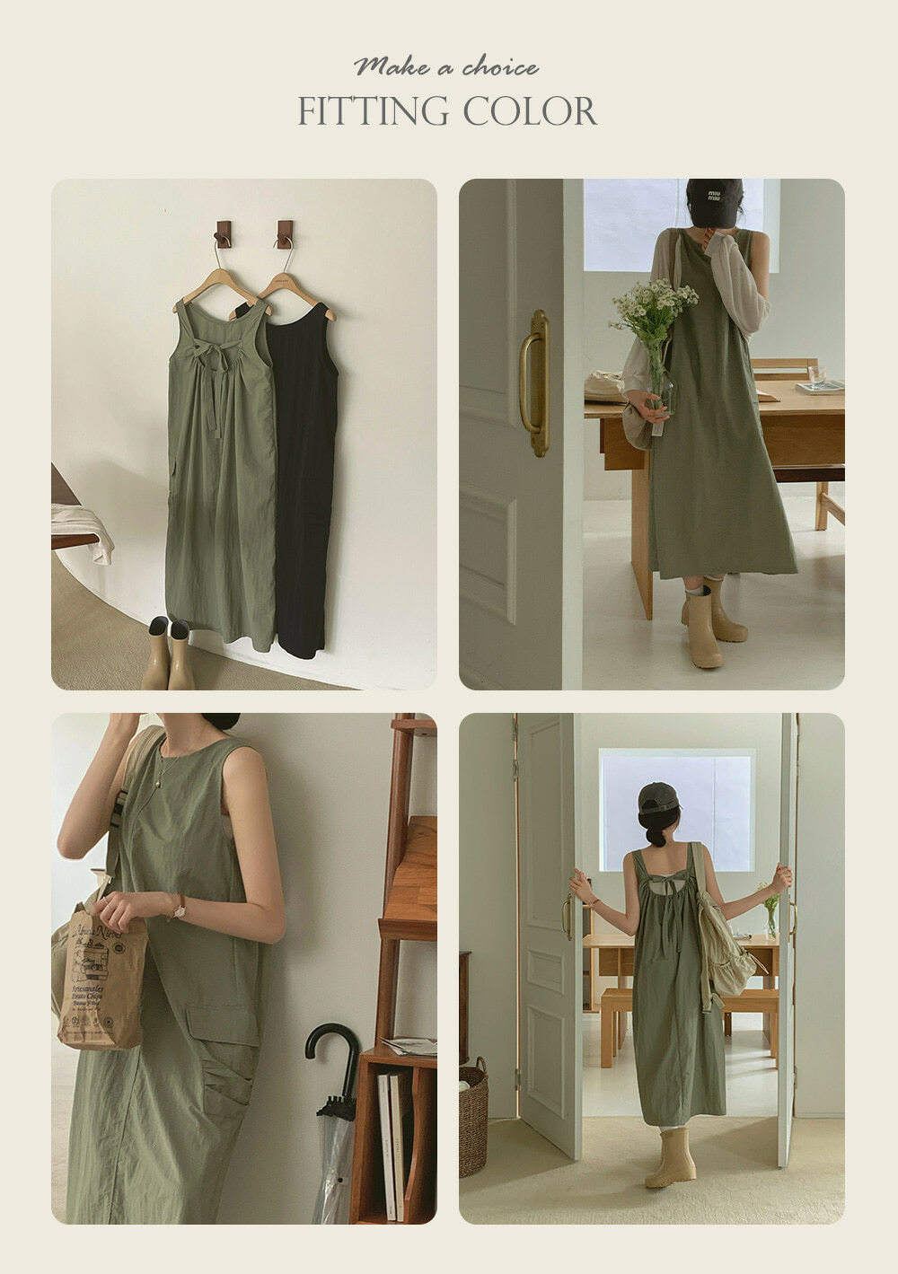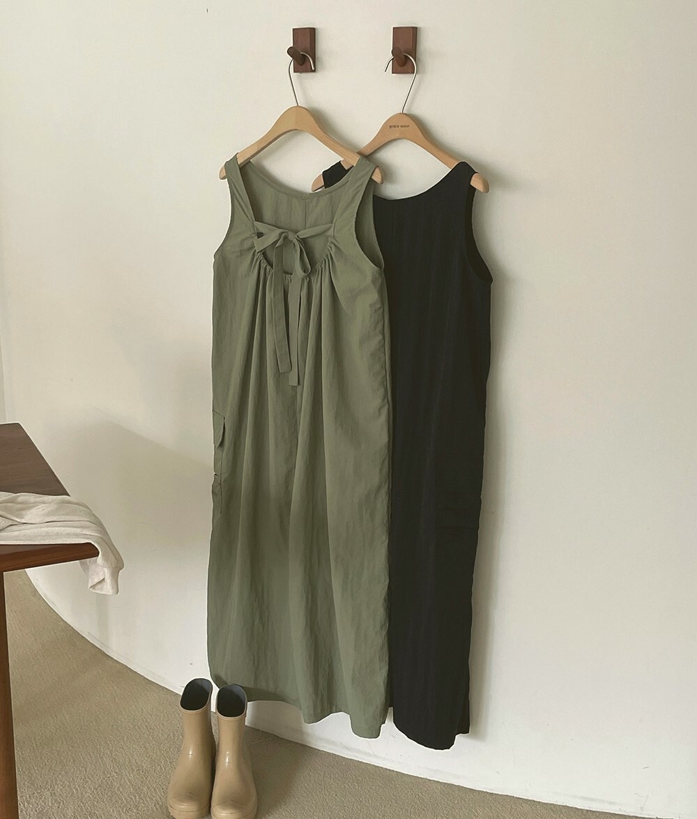 韓國grace muse授權 率性後綁帶細節工裝口袋連身裙