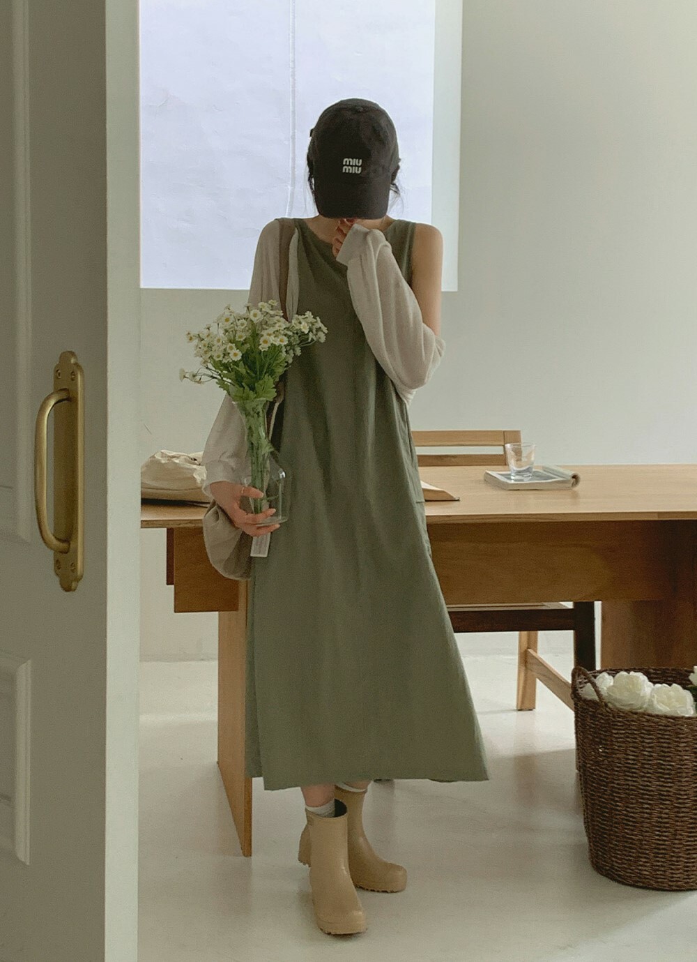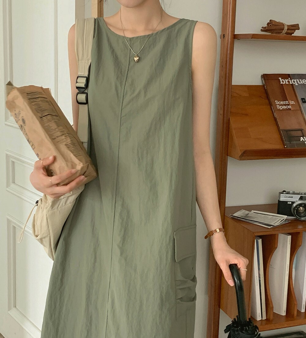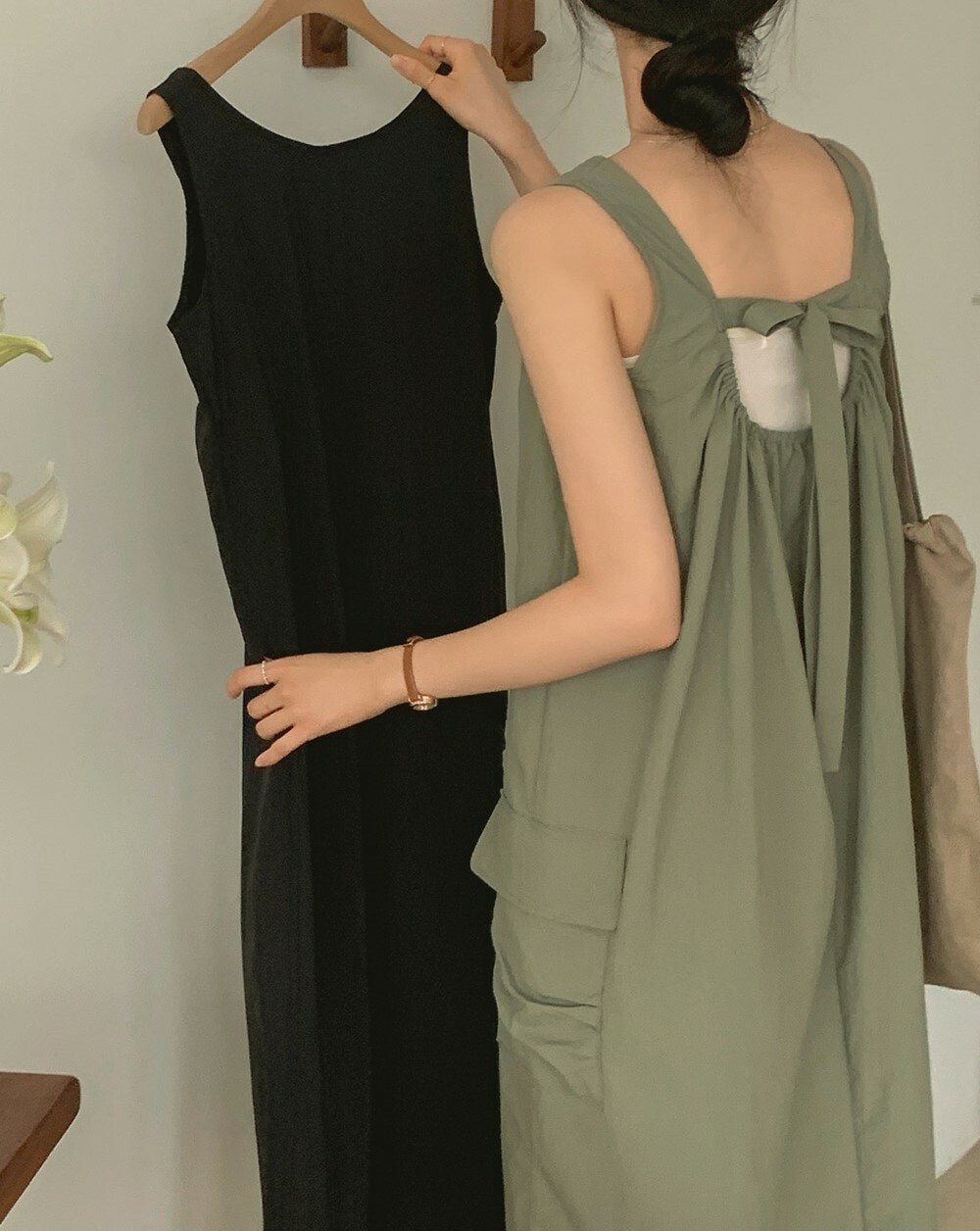 韓國grace muse授權 率性後綁帶細節工裝口袋連身裙